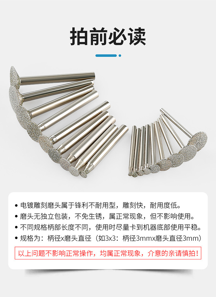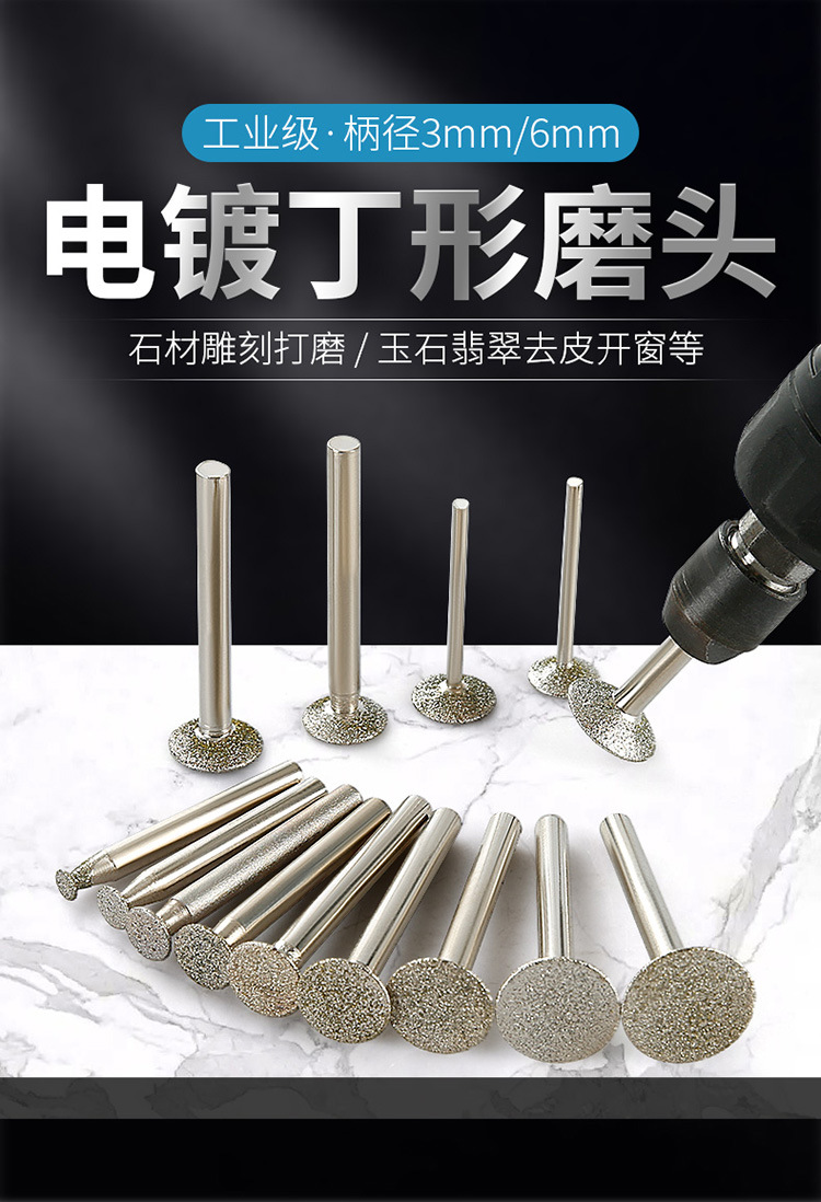 전기 도금 에머리 딩 모양의 연삭 헤드 스톤 릴리프 꽃 조각 네일 헤드 전기 연삭 기계 경사 딩 연삭 헤드 막대 돌 조각 도구스토어 가기