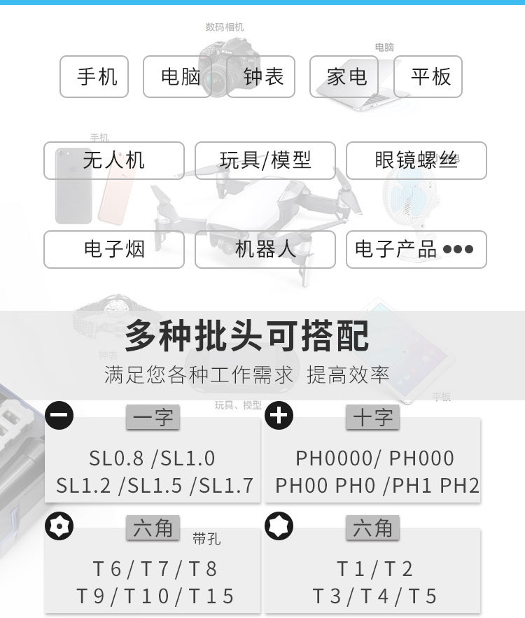 19年全新上市产品,超多种类批头 ,是普通组合螺丝刀的进阶版工具。