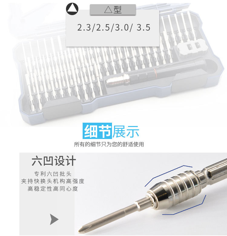 达到高配合度,和紧密度 以解决大多数组合螺丝刀 稳定性 同心度 配合间隙差等缺点。