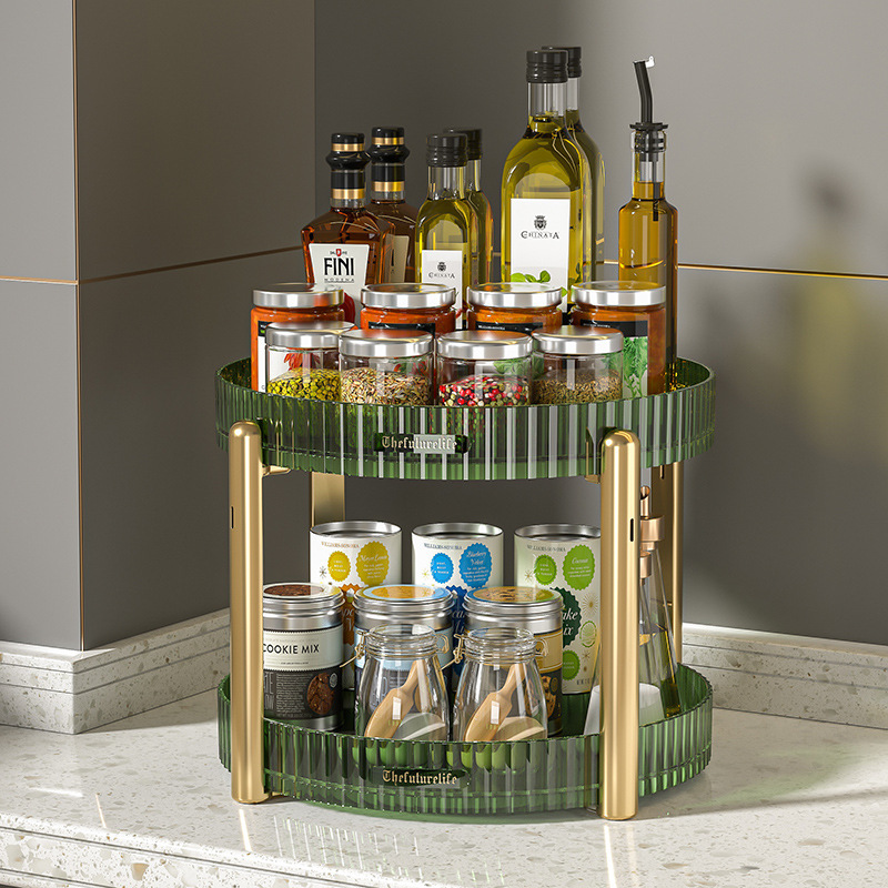 가벼운 럭셔리 금도금 회전 보관함 가정용 다기능 보관함 화장품 보관함 주방 조미료 보관