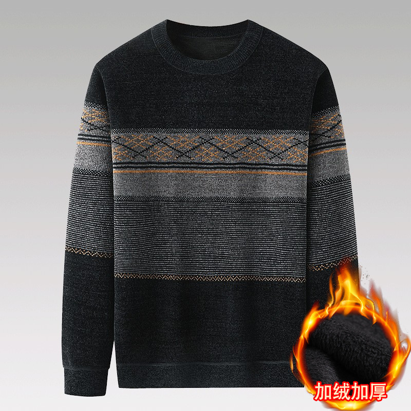 중년 남성을위한 아빠 겨울 기모 스웨터 중년 및 노인 남성을위한 두꺼운 따뜻한 니트 바닥 셔츠
