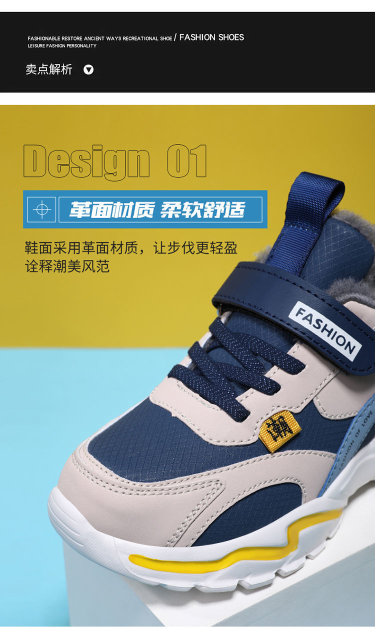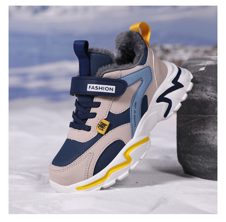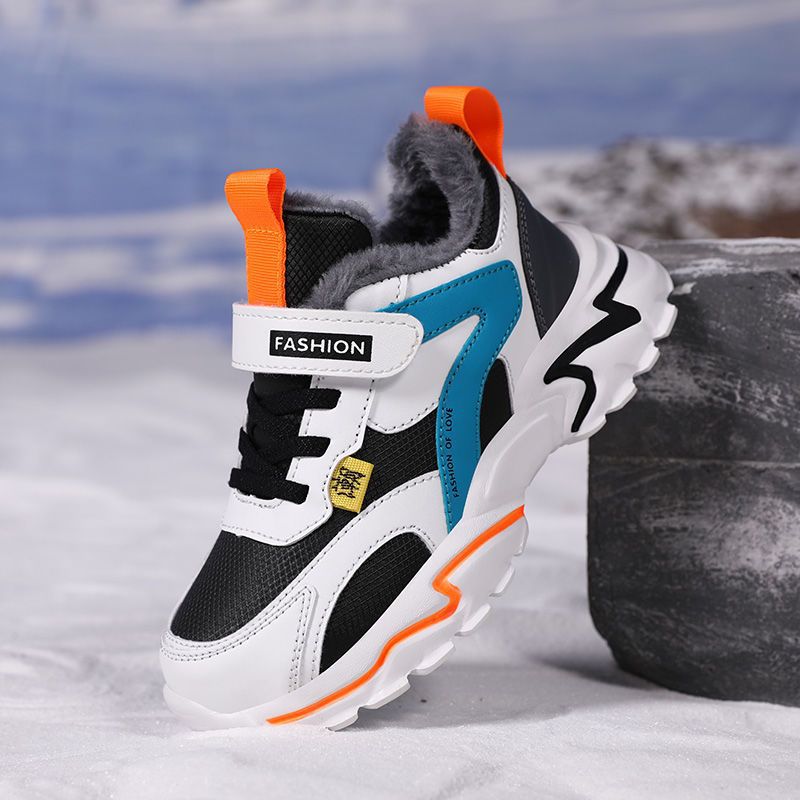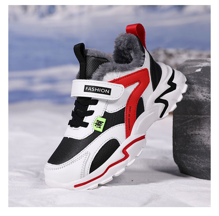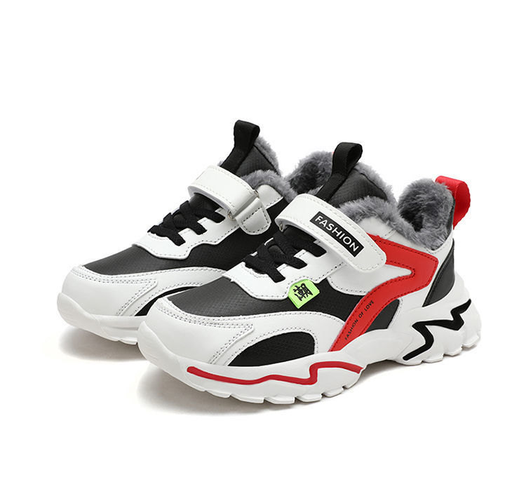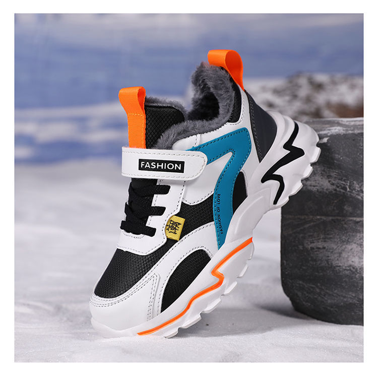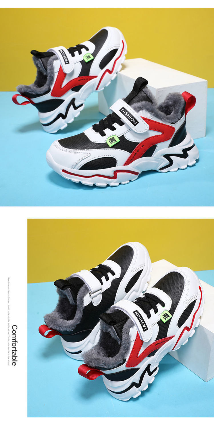 남아 운동화 가을 겨울 가죽 대형 면화 신발 어린이용 플러스 벨벳 중대형 어린이 초등학생 운동화 캐주얼