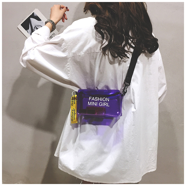 국경 가방 여성 2024 새로운 한국 투명 젤리 가방 트렌드 여성 가방 패션 어깨 메신저 가방 도매