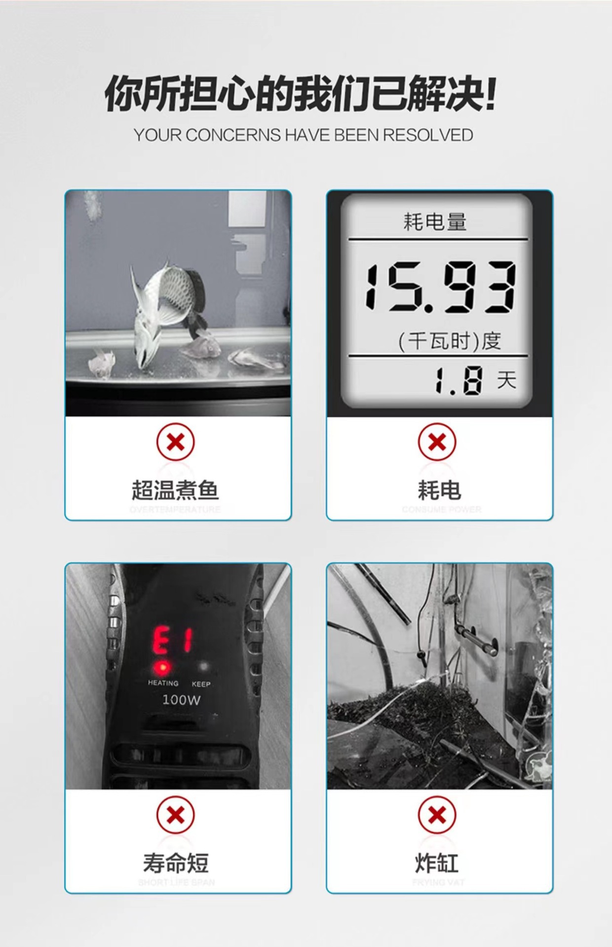 장 어항 해수 탱크 가변 주파수 히팅 로드 AI 지능형 자동 절전 석영 방폭 실린더 히팅 로드스토어 가기