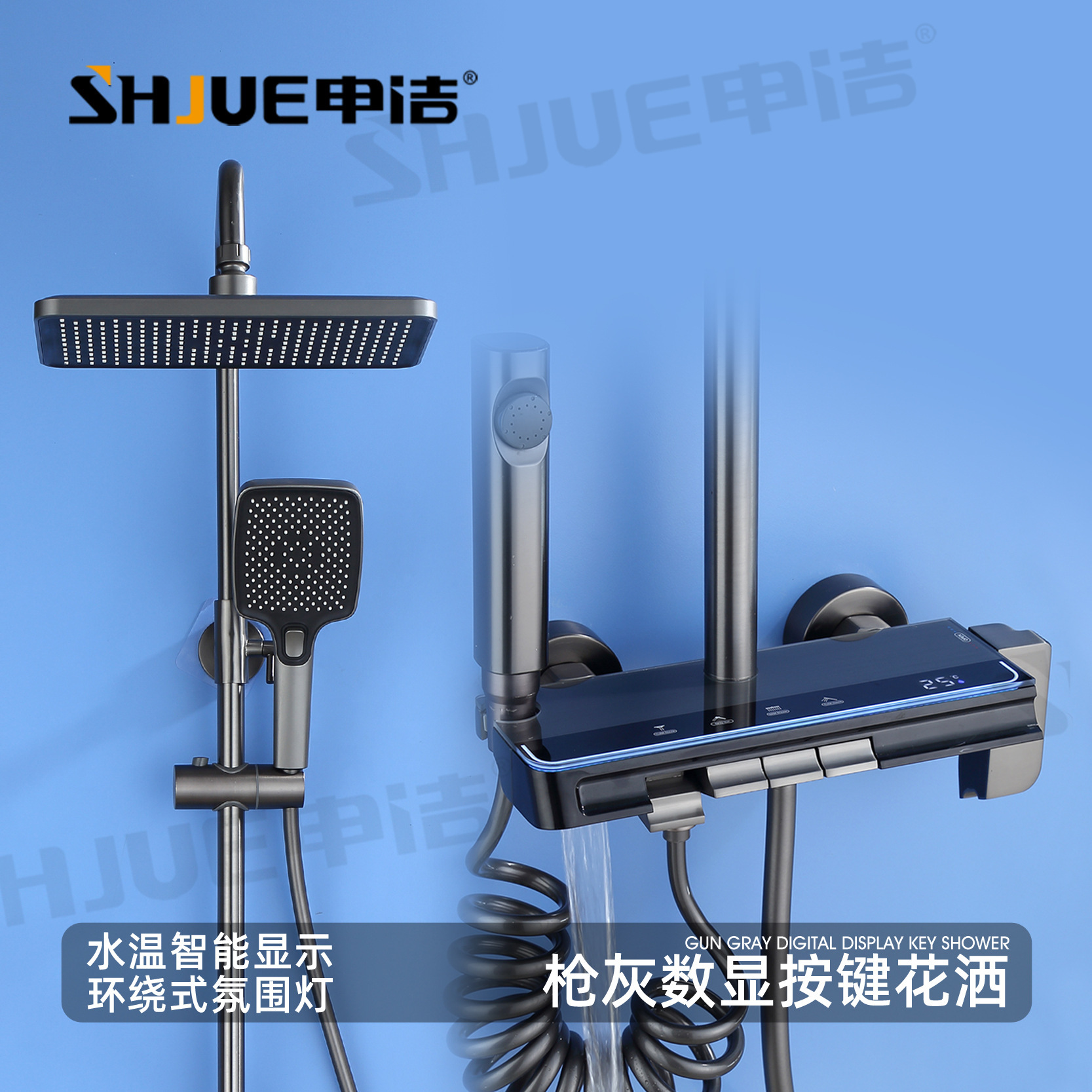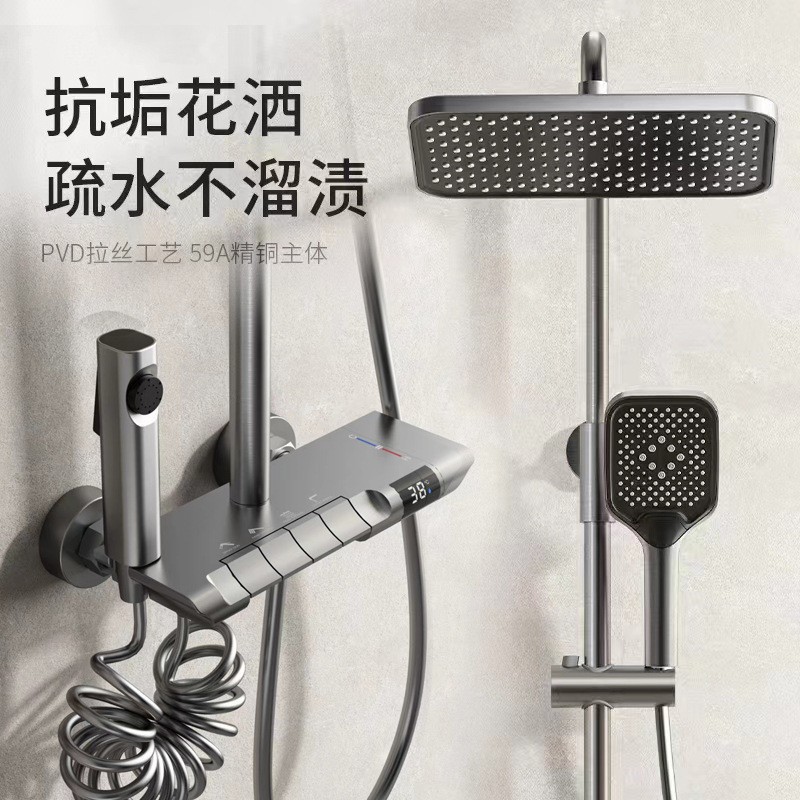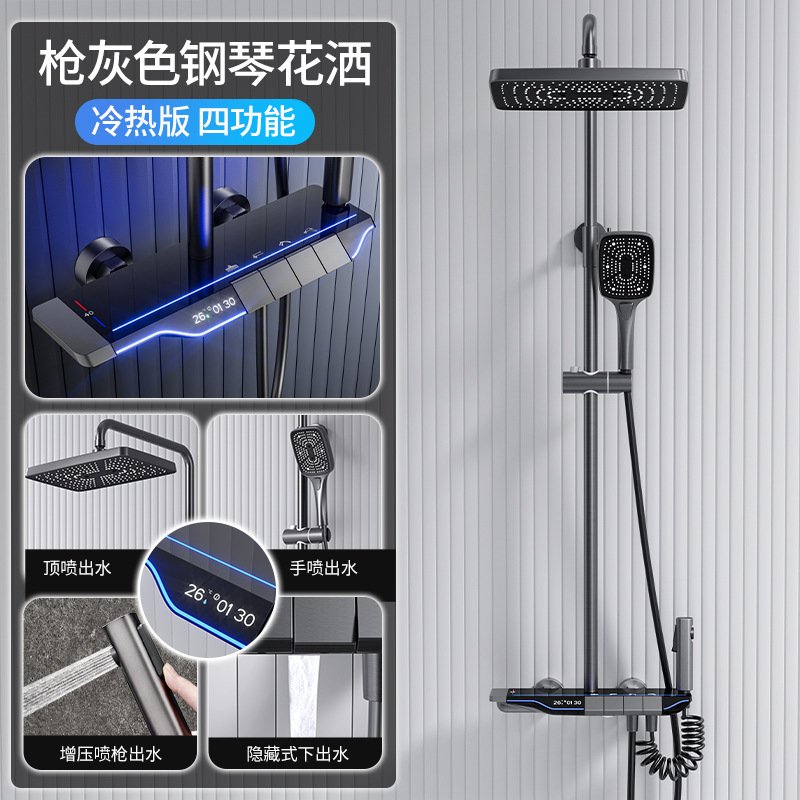 작은 빨간 책 모든 구리 피아노 키 디지털 디스플레이 일정한 온도 샤워 세트 가정용 지능형 디지털 디스플레이 압축 샤워