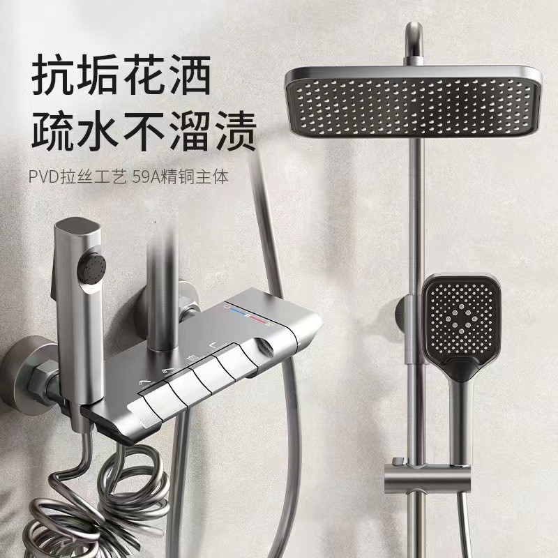 작은 빨간 책 모든 구리 피아노 키 디지털 디스플레이 일정한 온도 샤워 세트 가정용 지능형 디지털 디스플레이 압축 샤워스토어 가기
