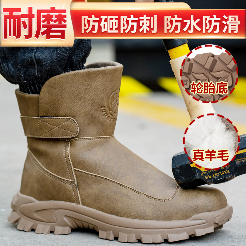 겨울철 보온 작업화, 충격 방지 및 관통 방지 남성용 야외 건설 현장 작업화, 방수 및 내마모성 안전화 도매