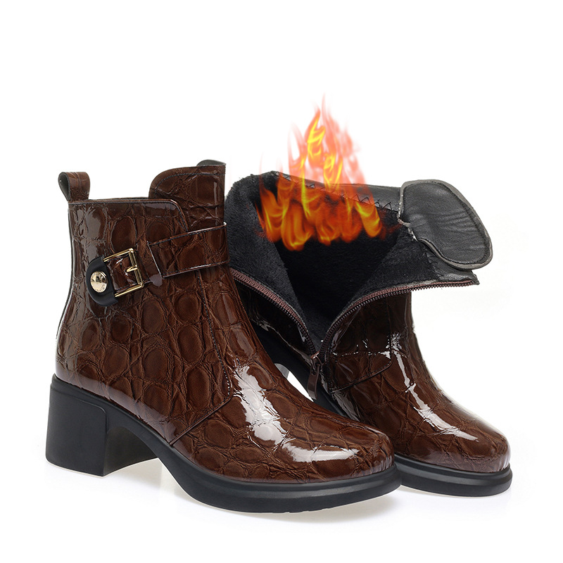 엄마의 신발면 패딩 신발 가을과 겨울 새로운 중년 및 노인 기모 짧은 부츠 부드러운 바닥 청키 힐 여성 부츠 중년 여성 가죽 신발