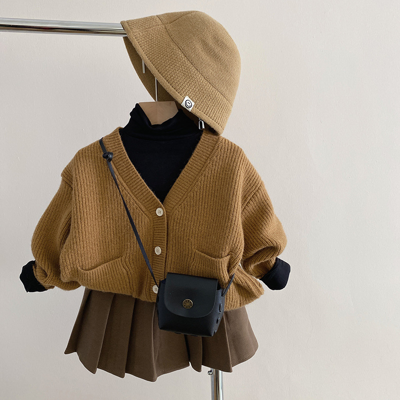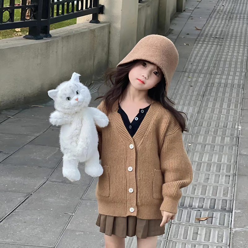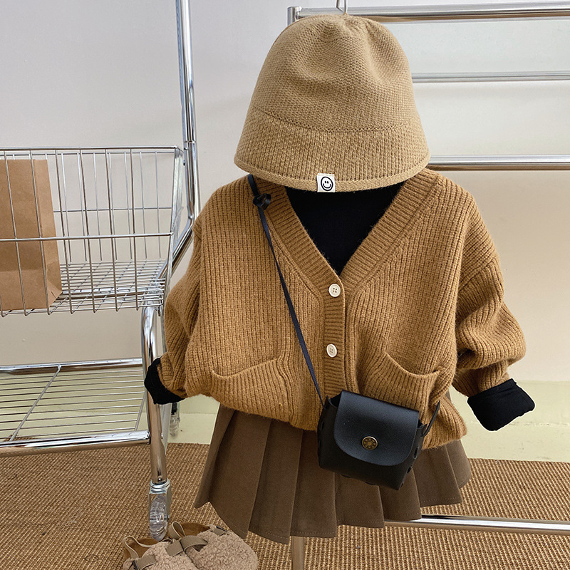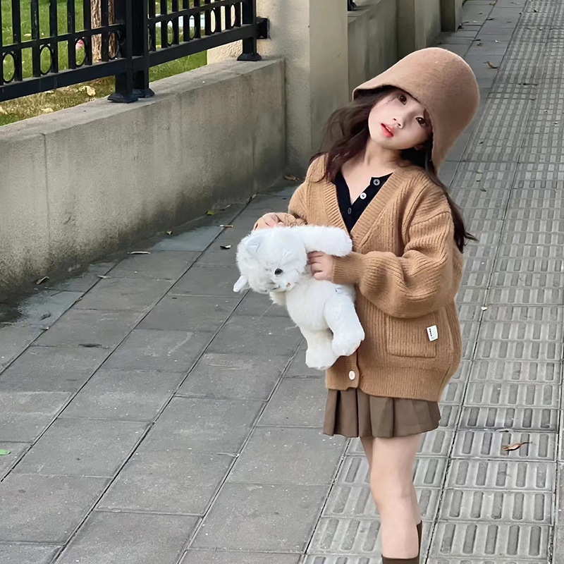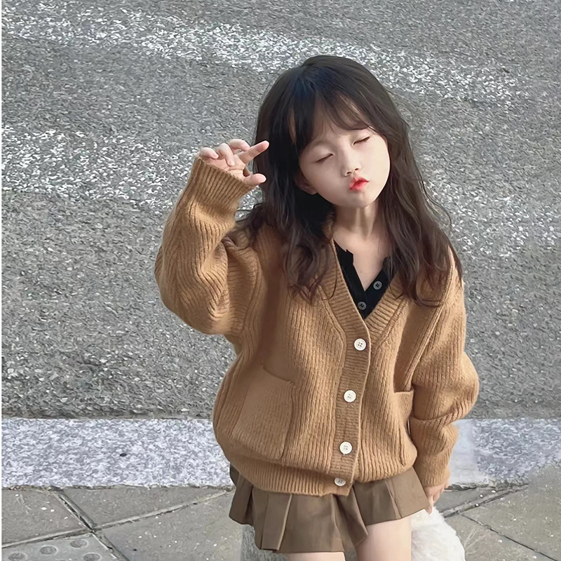 어린이 스웨터 2023 봄과 가을 새로운 소년 소녀 한국 단색 울 카디건 아기 스웨터 코트 조수스토어 가기