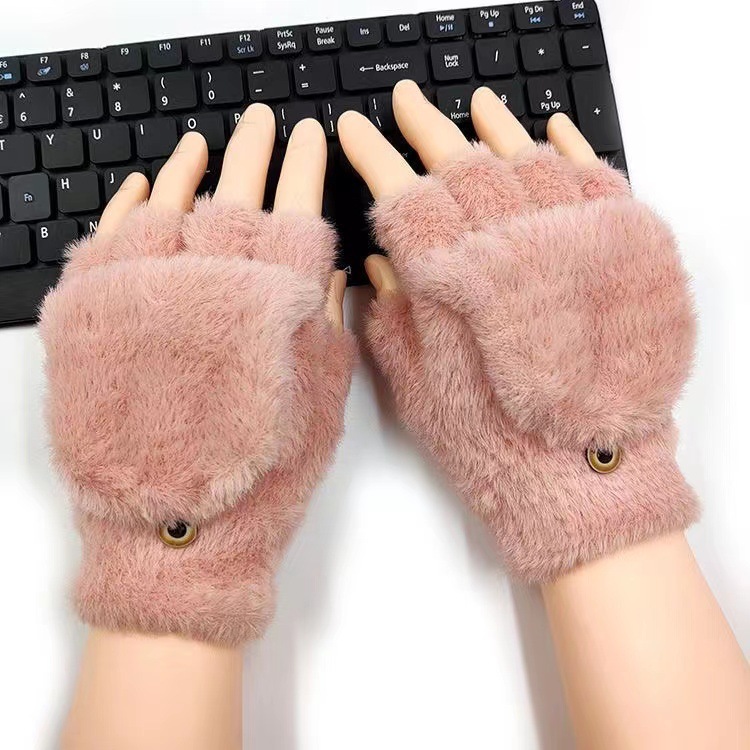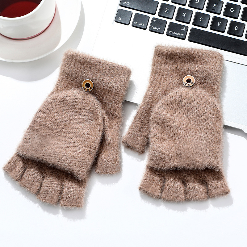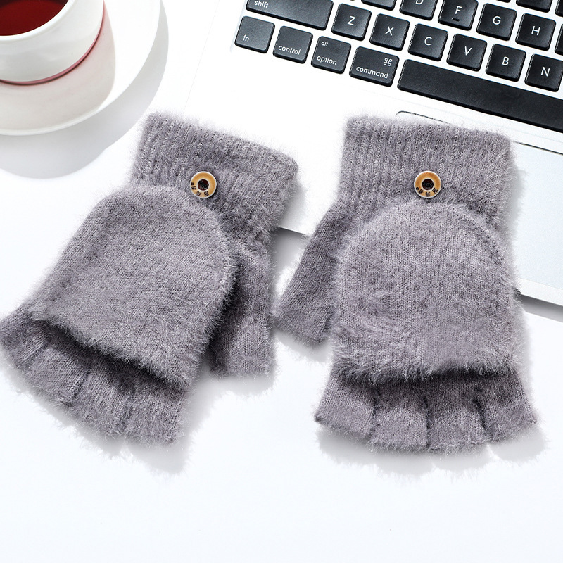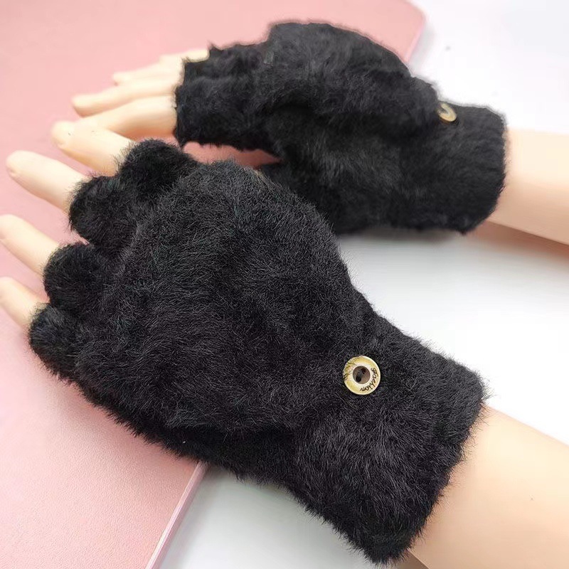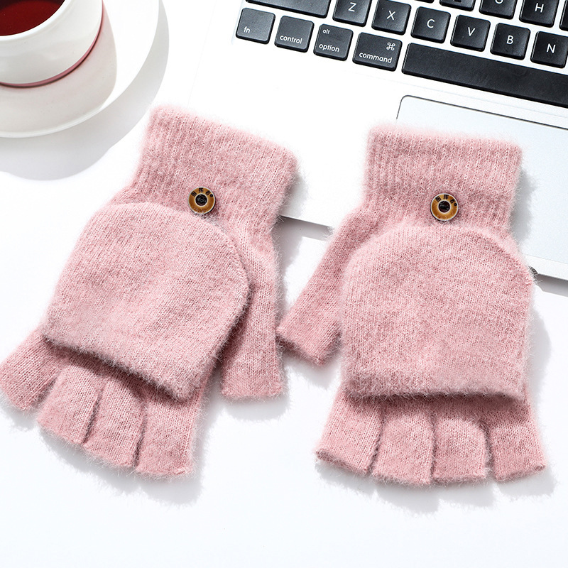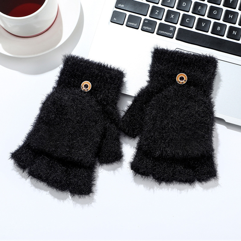겨울 따뜻한 장갑 귀여운 반 손가락 장갑 봉제 플립 장갑 니트 노동 작업 장갑 사이클링 장갑