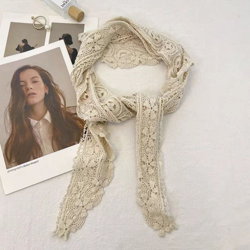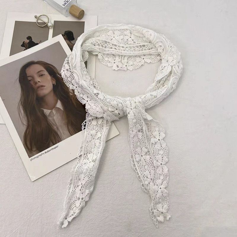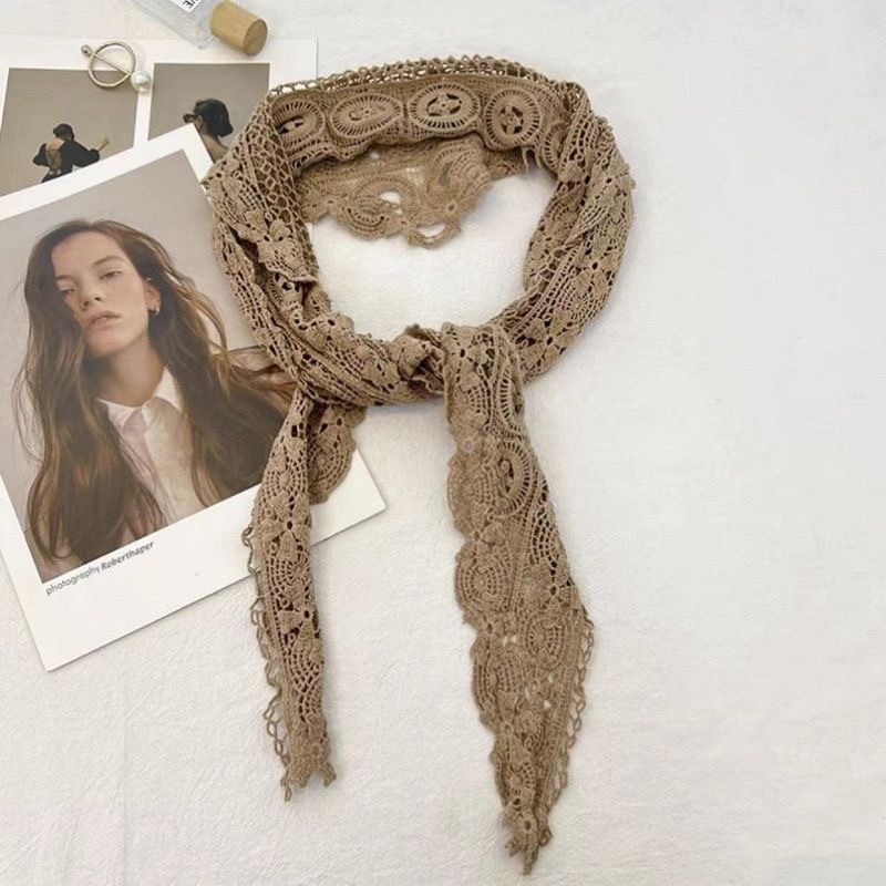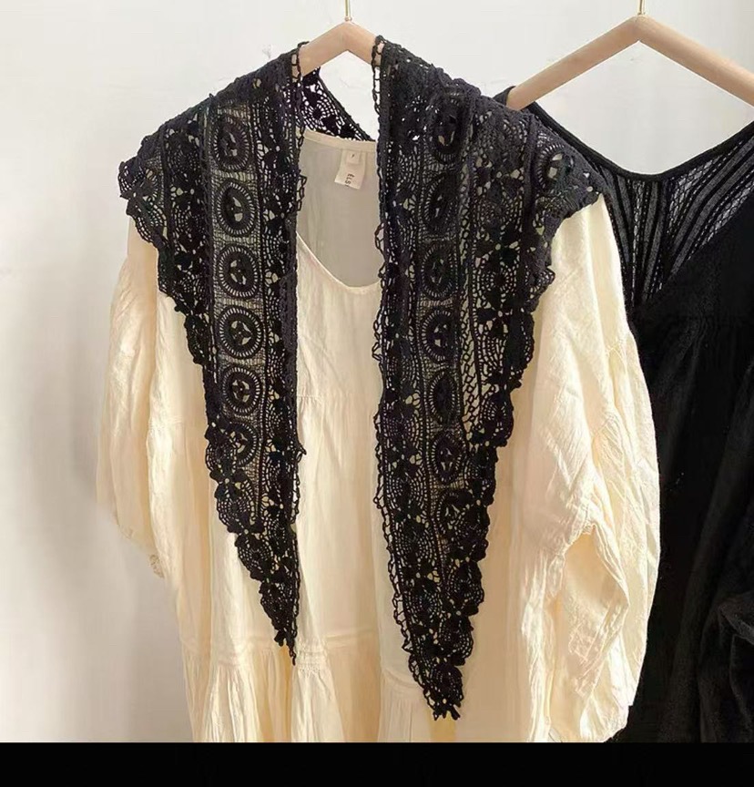 모리 코튼 리넨 삼각형 스카프 여자 여름 중공 크로 셰 뜨개질 레이스 작은 목도리 스커트 스카프 가짜 목걸이