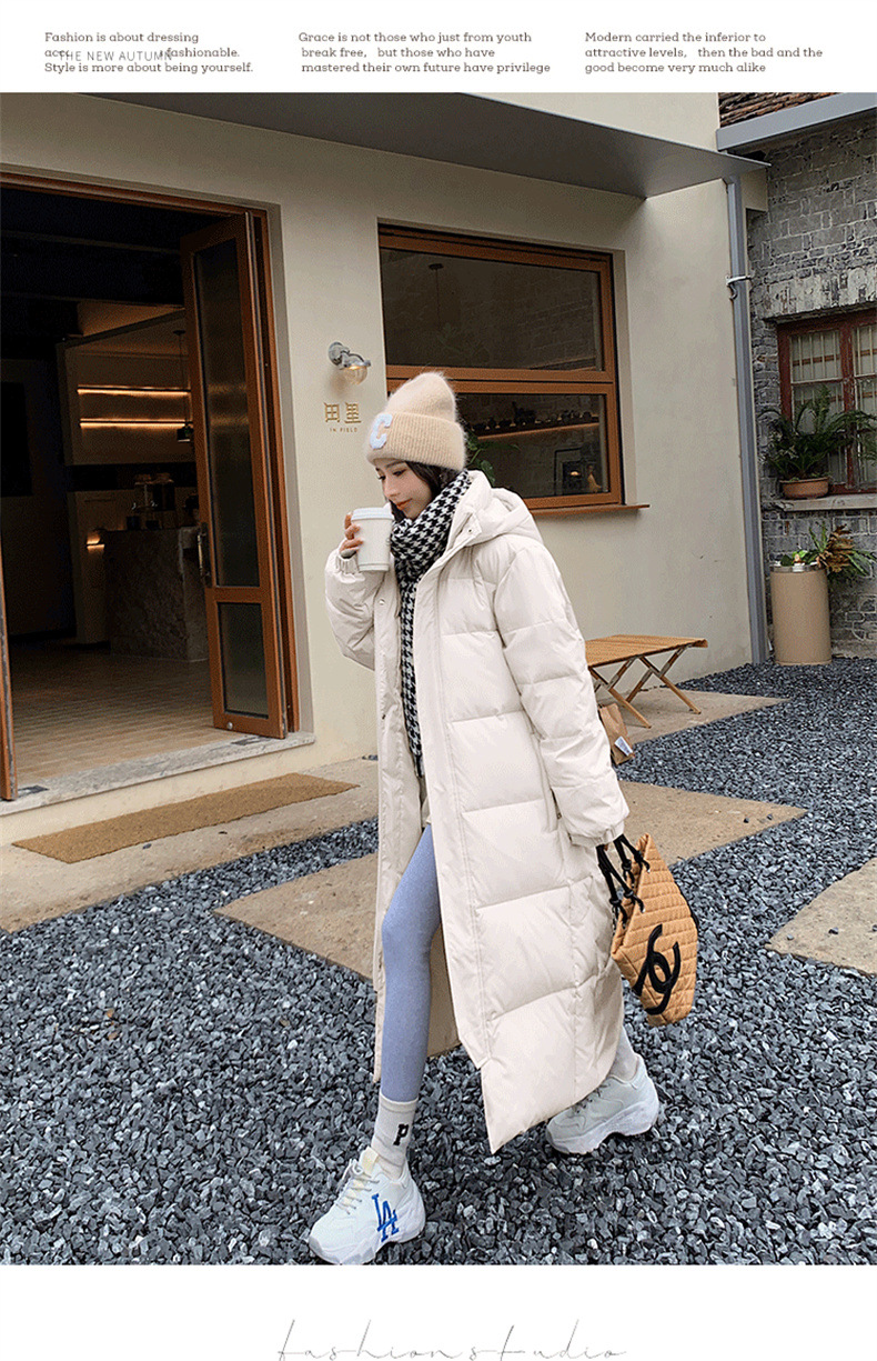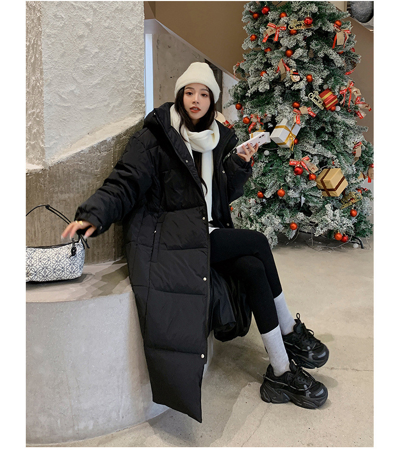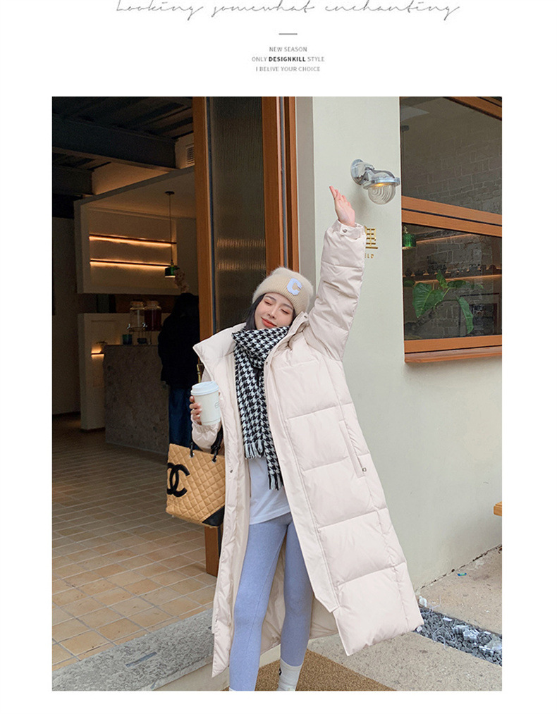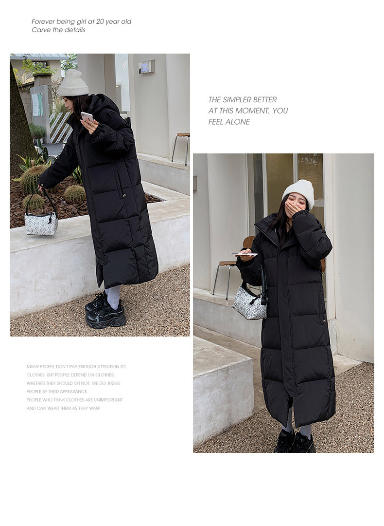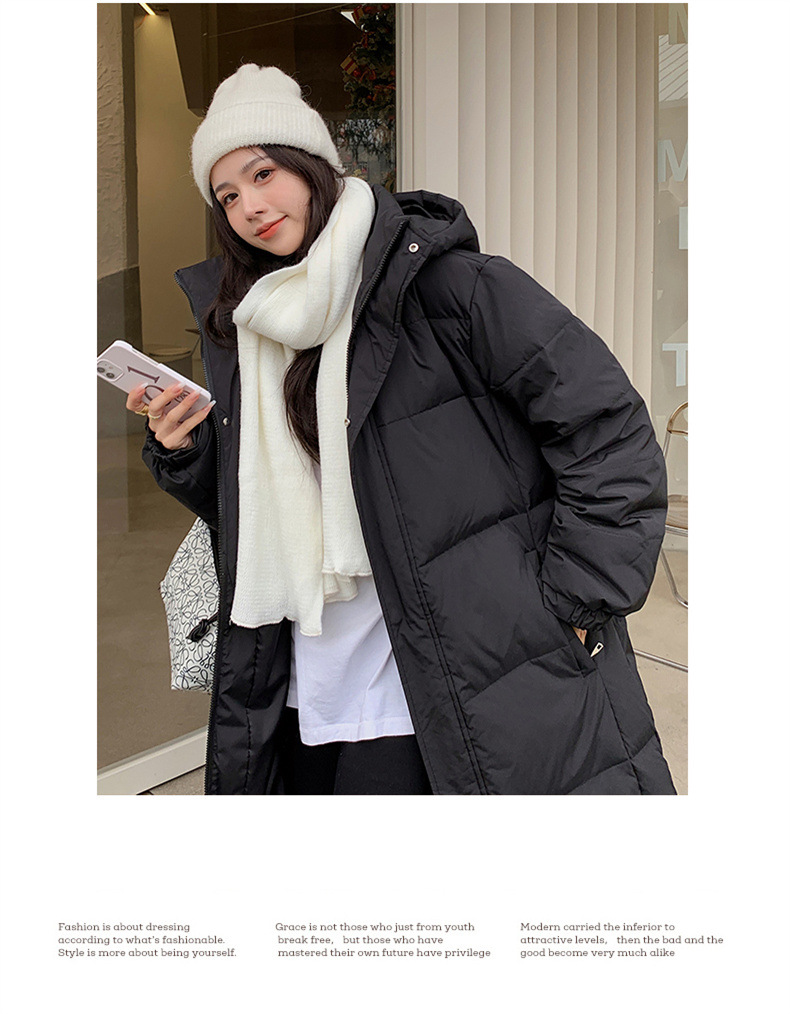 여성용 블랙 캐주얼 다운 코튼 패딩 코트 2023 새로운 확장 된 오버 더 무릎 시크한 홍콩 스타일면 패딩 코트 도매