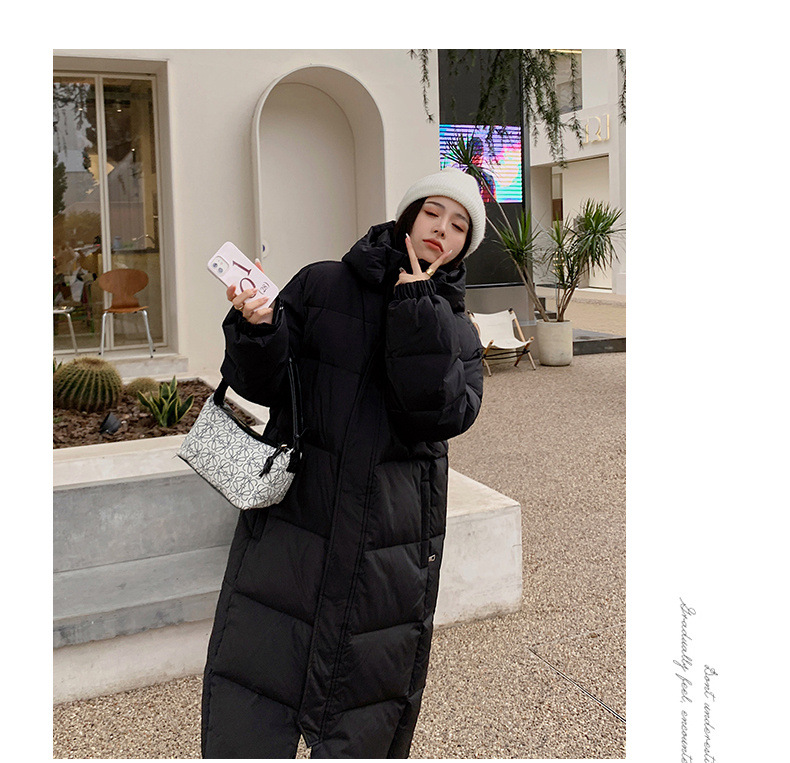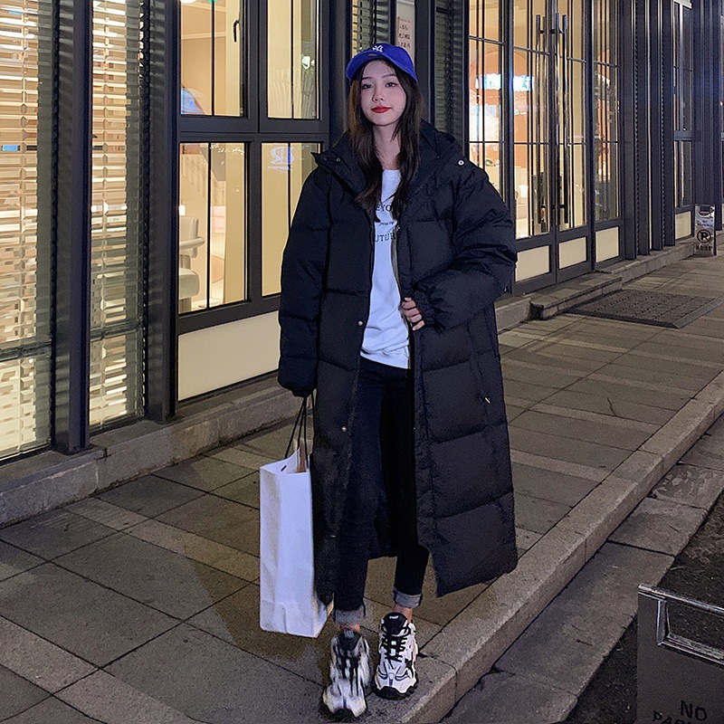 여성용 블랙 캐주얼 다운 코튼 패딩 코트 2023 새로운 확장 된 오버 더 무릎 시크한 홍콩 스타일면 패딩 코트 도매스토어 가기