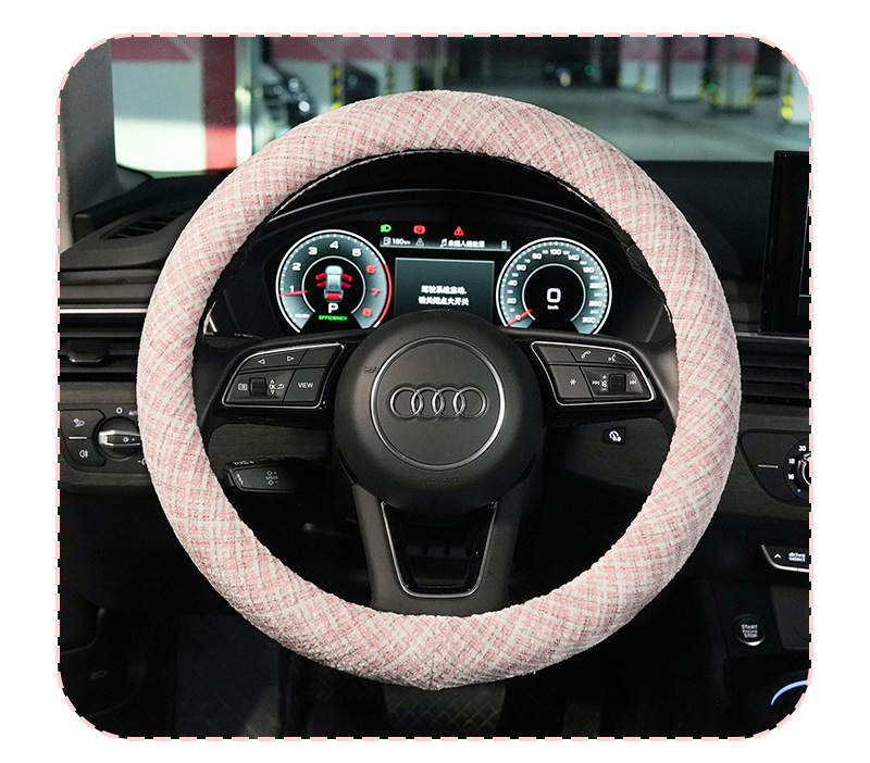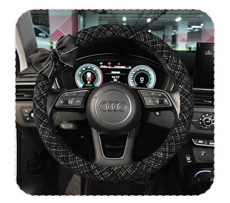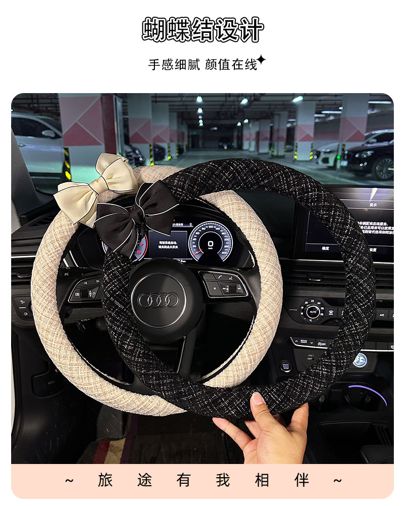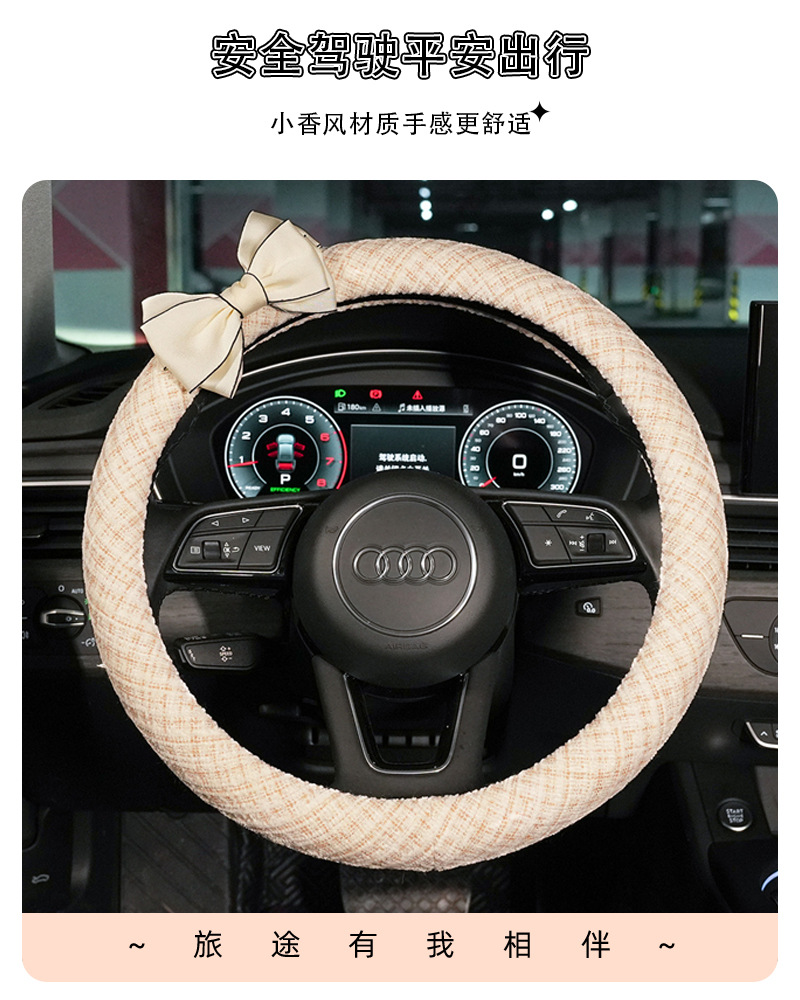 스티어링 휠 커버, 샤넬 스타일 면과 린넨 소재, 차량용 미끄럼 방지 스티어링 휠 커버, 라이트 럭셔리 리본 장식 자동차 스티어링 휠 커버