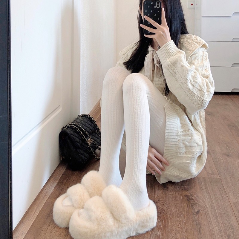 가을과 겨울 두꺼운 흰색 레깅스 여성 기모 아이보리 세로 줄무늬 팬티 스타킹 일본 jk 우유 흰색 팬티 스타킹스토어 가기