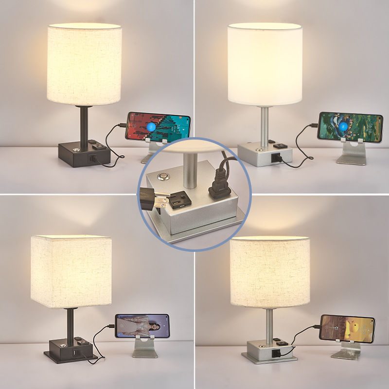 USB 침대 옆 램프가있는 새로운 터치 크리에이티브 테이블 다기능 침실 램프 플러그 데스크 램프가있는 미국 패브릭 연구