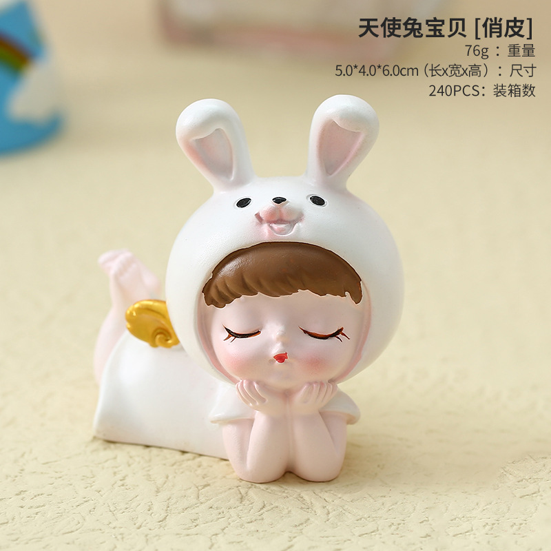 진짜 슈퍼 귀여운 토끼 아기 생일 케이크 수지 장식 마스코트 홈 데스크탑 어린이 방 장식 여자 친구 선물