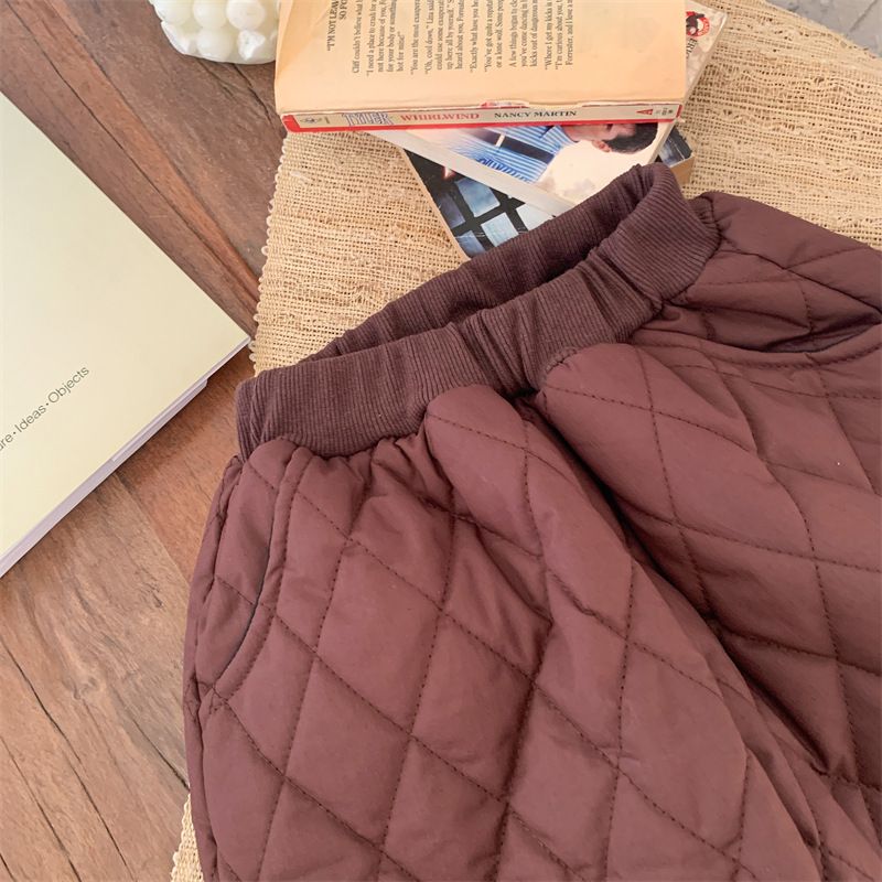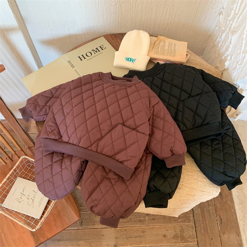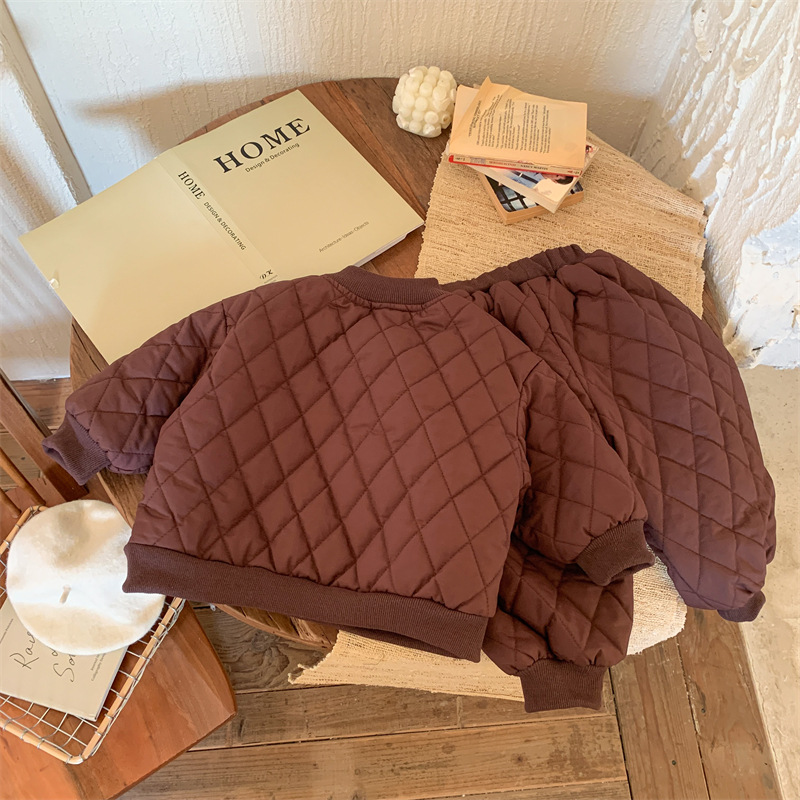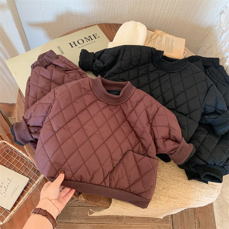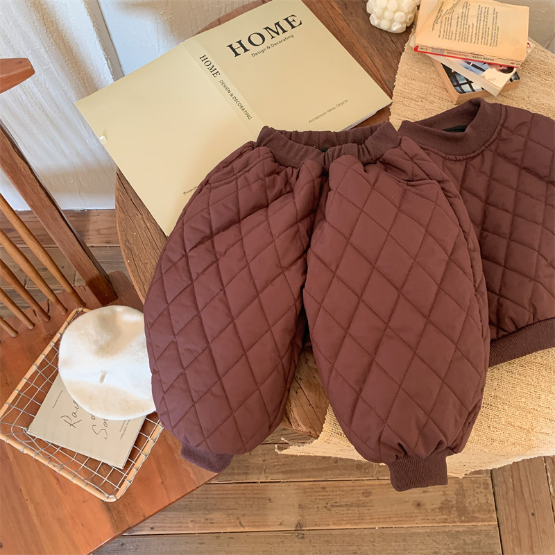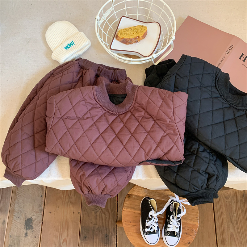 몽테뉴 아동복 소년 소녀 한국식 단색 퀼팅 면 세트 아동용 두꺼운 탑 트렌디 투피스 팬츠 세트