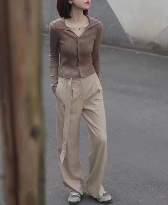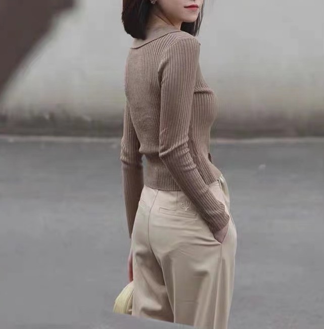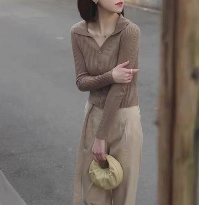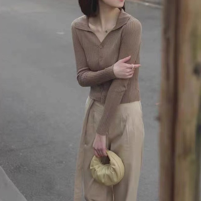 Xiaoxiang 스타일 니트 가디건 여성용 한국식 POLO 칼라 2022 가을 새 스웨터 작은 복고풍 슬림 탑