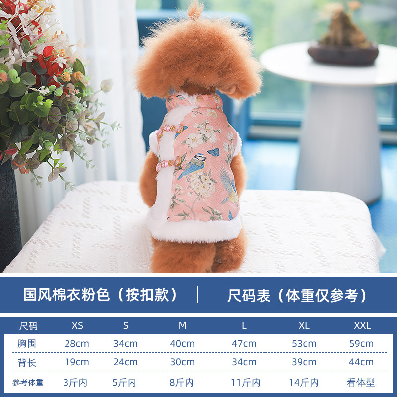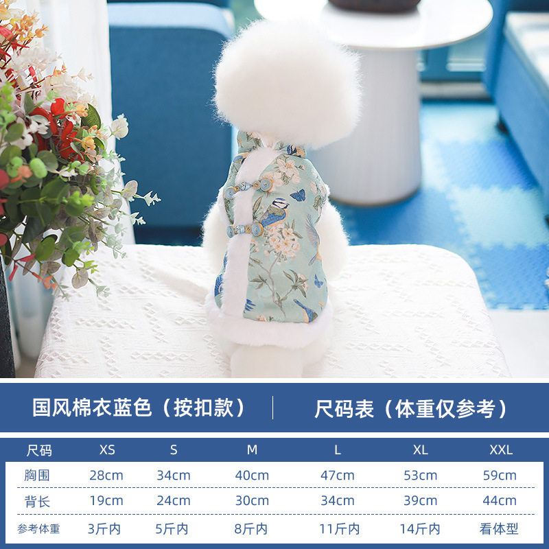 2022 가을과 겨울 새로운 애완 동물 중국 스타일 고전적인 당나라 세트 테디 Bixiong 요크셔 포메리 개 고양이 옷