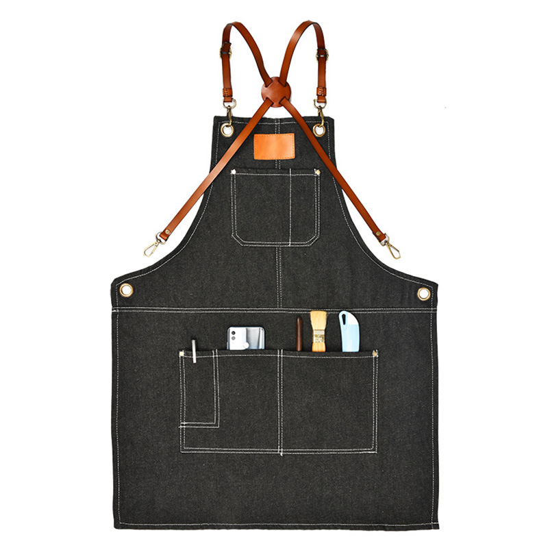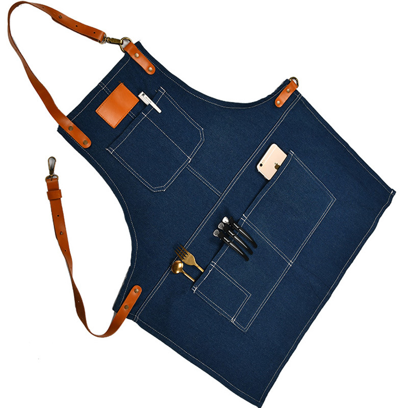 스팟 데님 작업복 앞치마 로고 브랜드 애완동물 커피숍 미용사 캔버스 앞치마 도매 심플