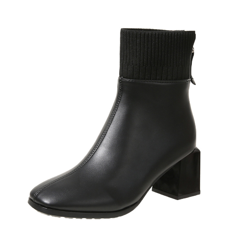 2022 가을과 겨울 새로운 패션 부츠 여성용 미드 힐 여성용 짧은 부츠 심플 스티칭 스퀘어 헤드 두꺼운 힐 백 지퍼 여성 부츠 트렌디스토어 가기