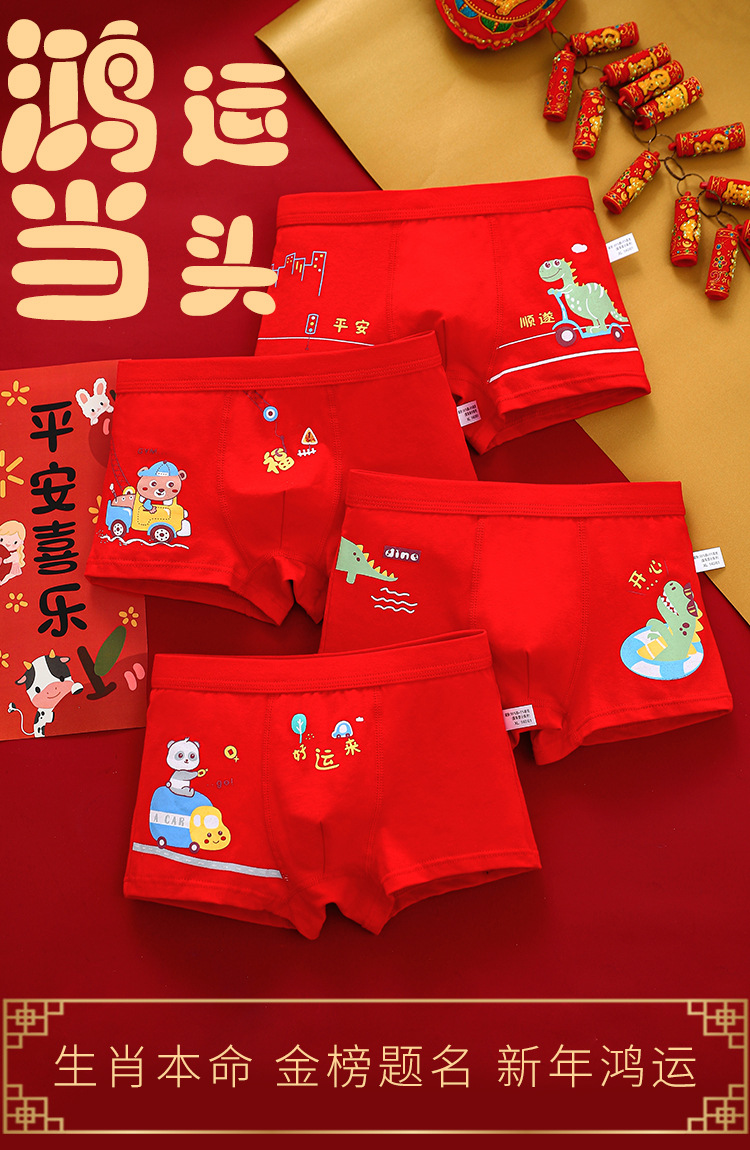 소년 속옷 면 빨간 바지 이 인생 년 중소 아동 복서 만화 학생 아기 복서 반바지 도매스토어 가기