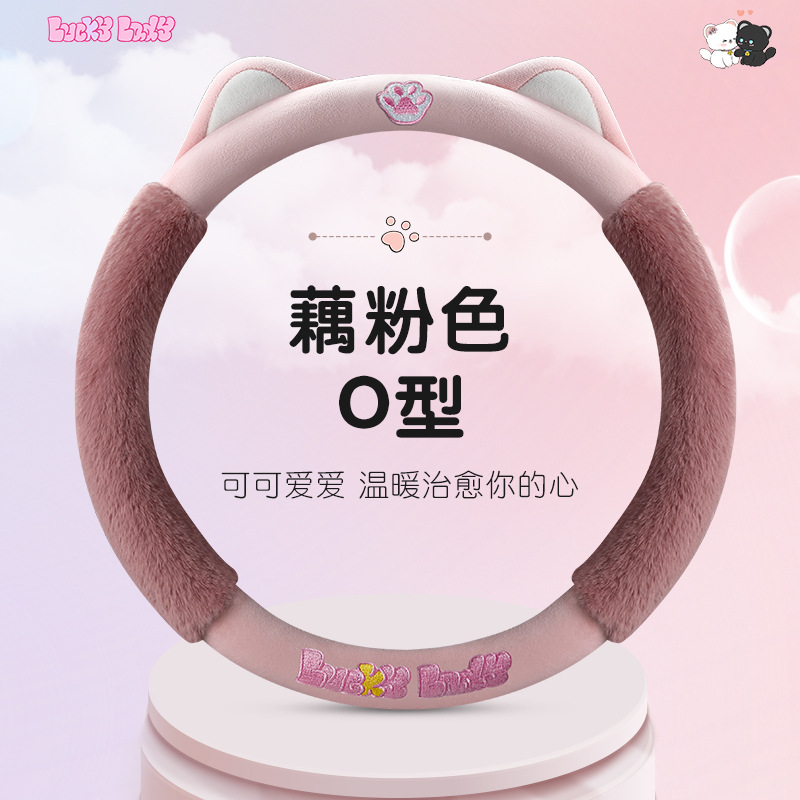 Huiku 봉제 핸들 커버 겨울 만화 귀여운 자동차 보안 핸들 커버 자동차 인테리어 여성의 짧은 양털 라운드 핸들 커버스토어 가기