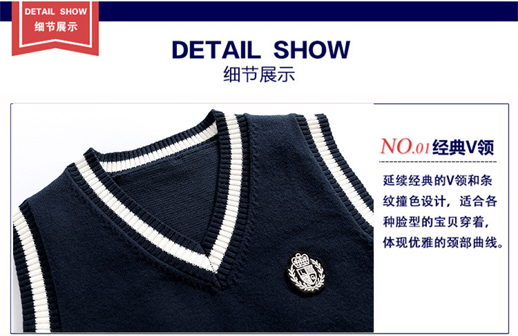 새로운 남성과 여성의 어린이 코러스 클래스 의류 V-넥 스웨터 조끼 영국 공연 의류 어린이 풀오버 스웨터 도매스토어 가기