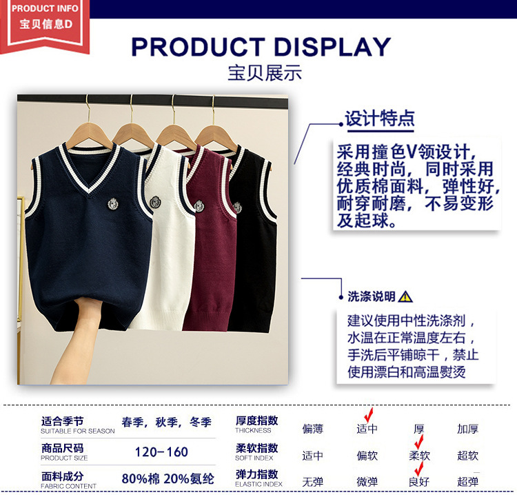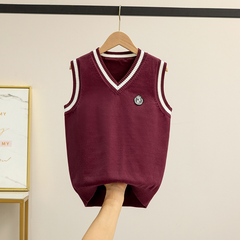 새로운 남성과 여성의 어린이 코러스 클래스 의류 V-넥 스웨터 조끼 영국 공연 의류 어린이 풀오버 스웨터 도매