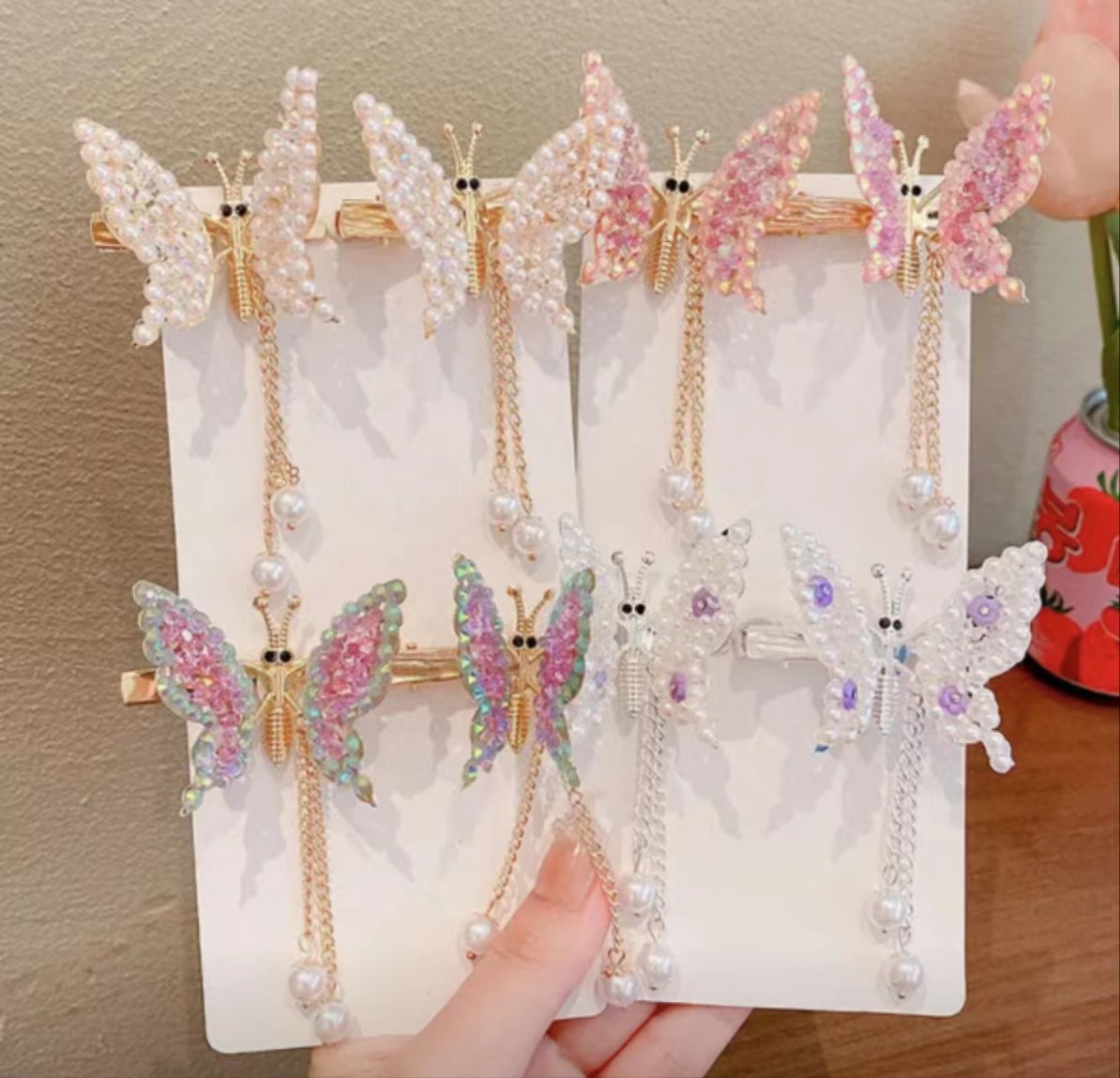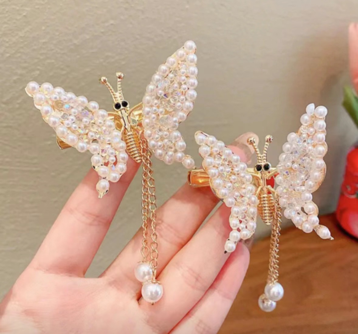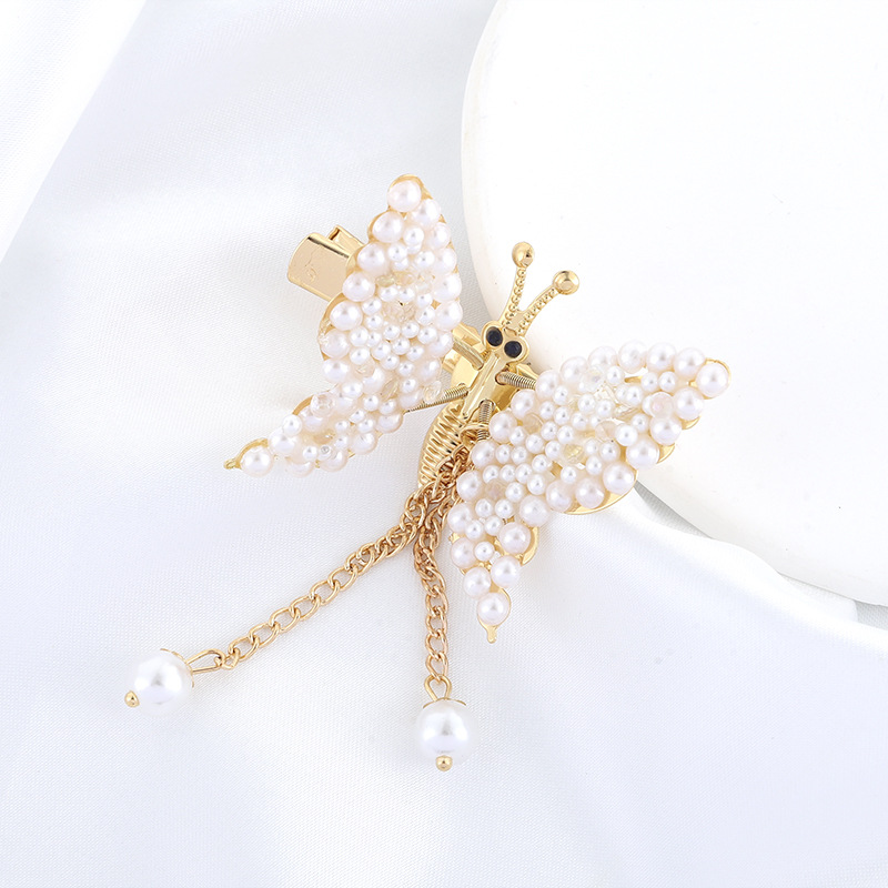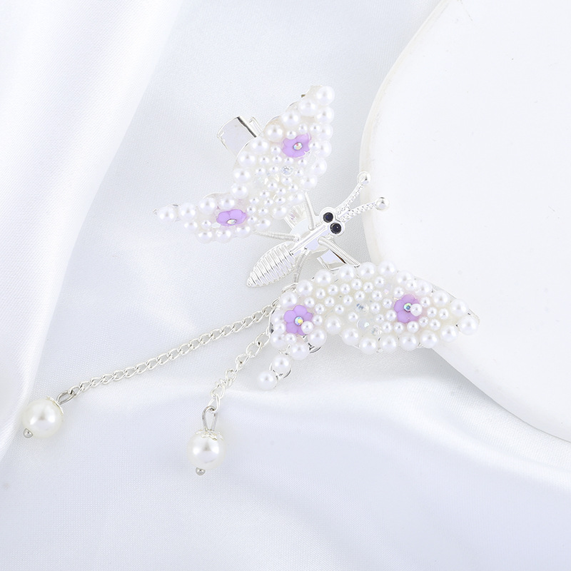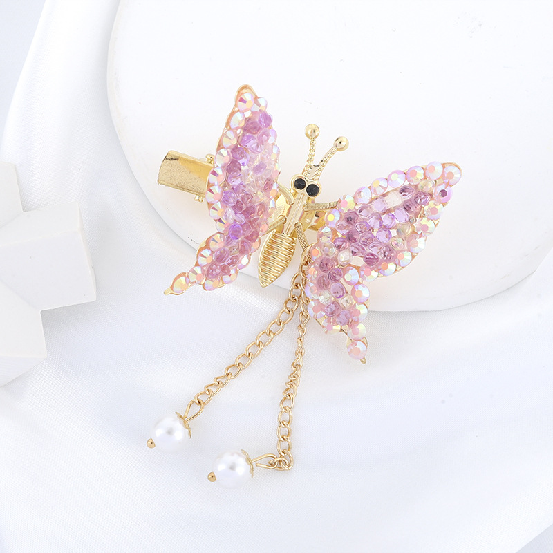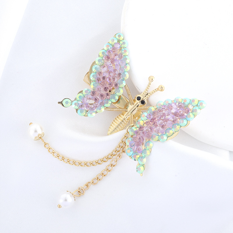 움직이는 날개를 가진 나비 술 머리 클립 새로운 모조 다이아몬드 모조 진주 옆 앞머리 클립 누르는 입 클립 달콤한 모자스토어 가기