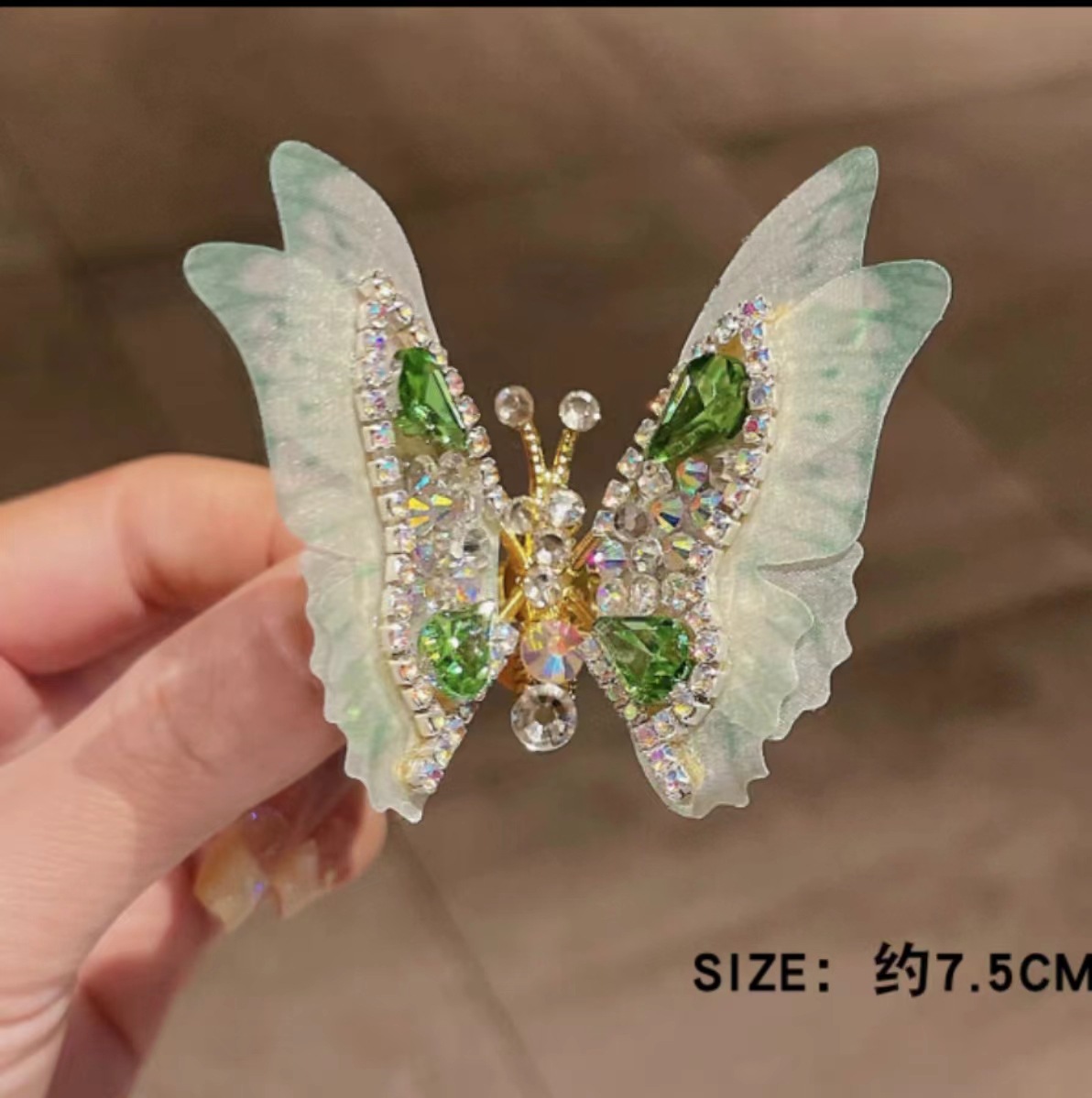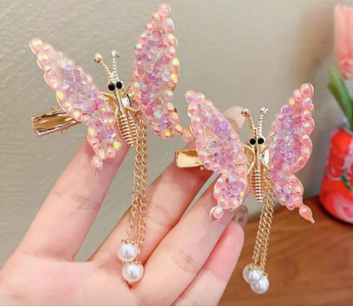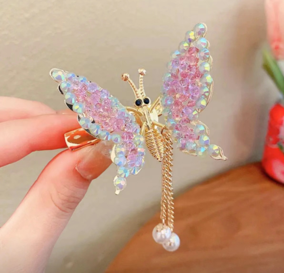 움직이는 날개를 가진 나비 술 머리 클립 새로운 모조 다이아몬드 모조 진주 옆 앞머리 클립 누르는 입 클립 달콤한 모자스토어 가기