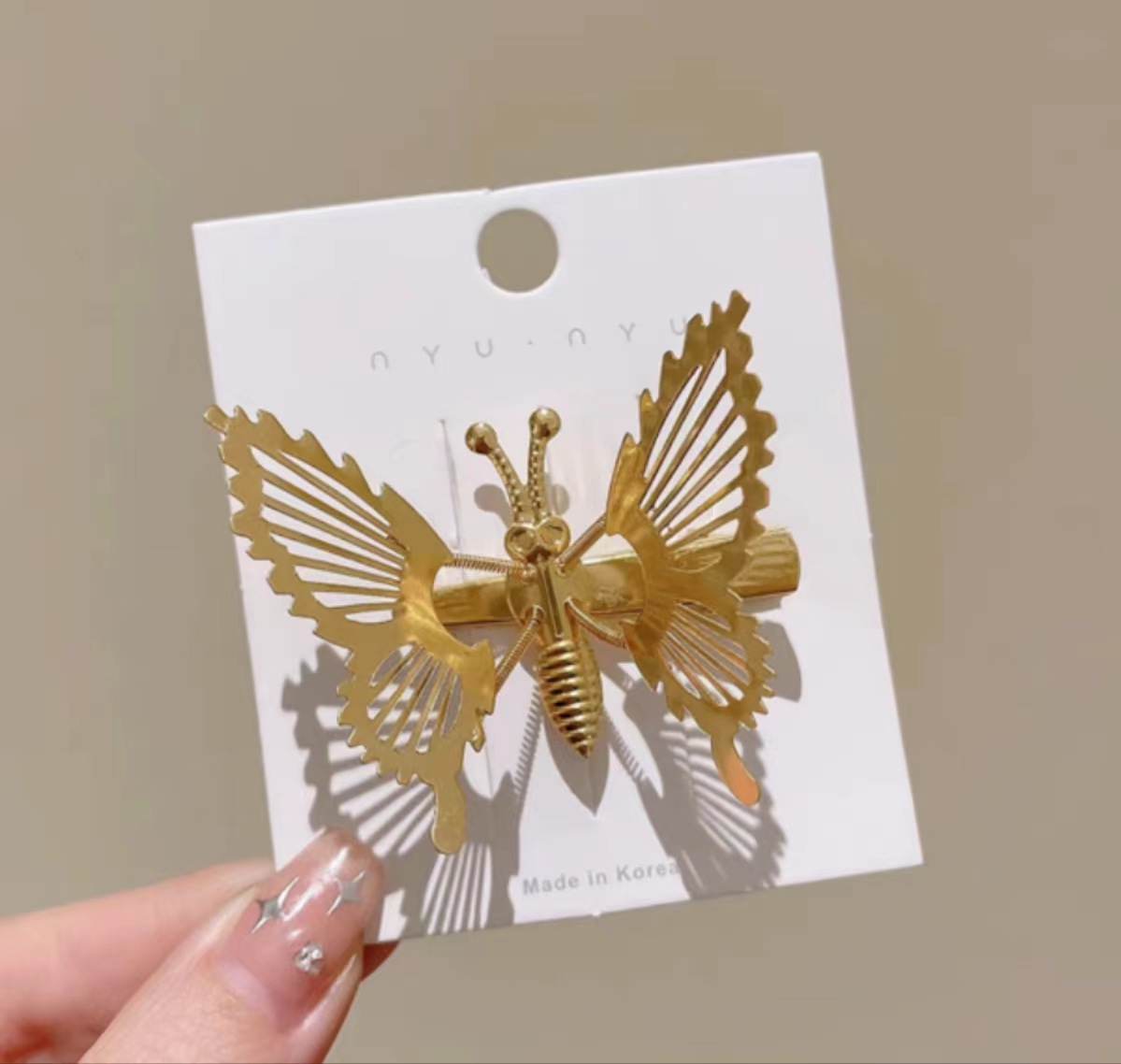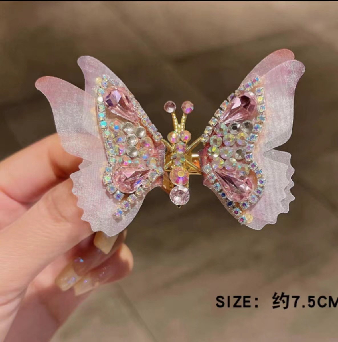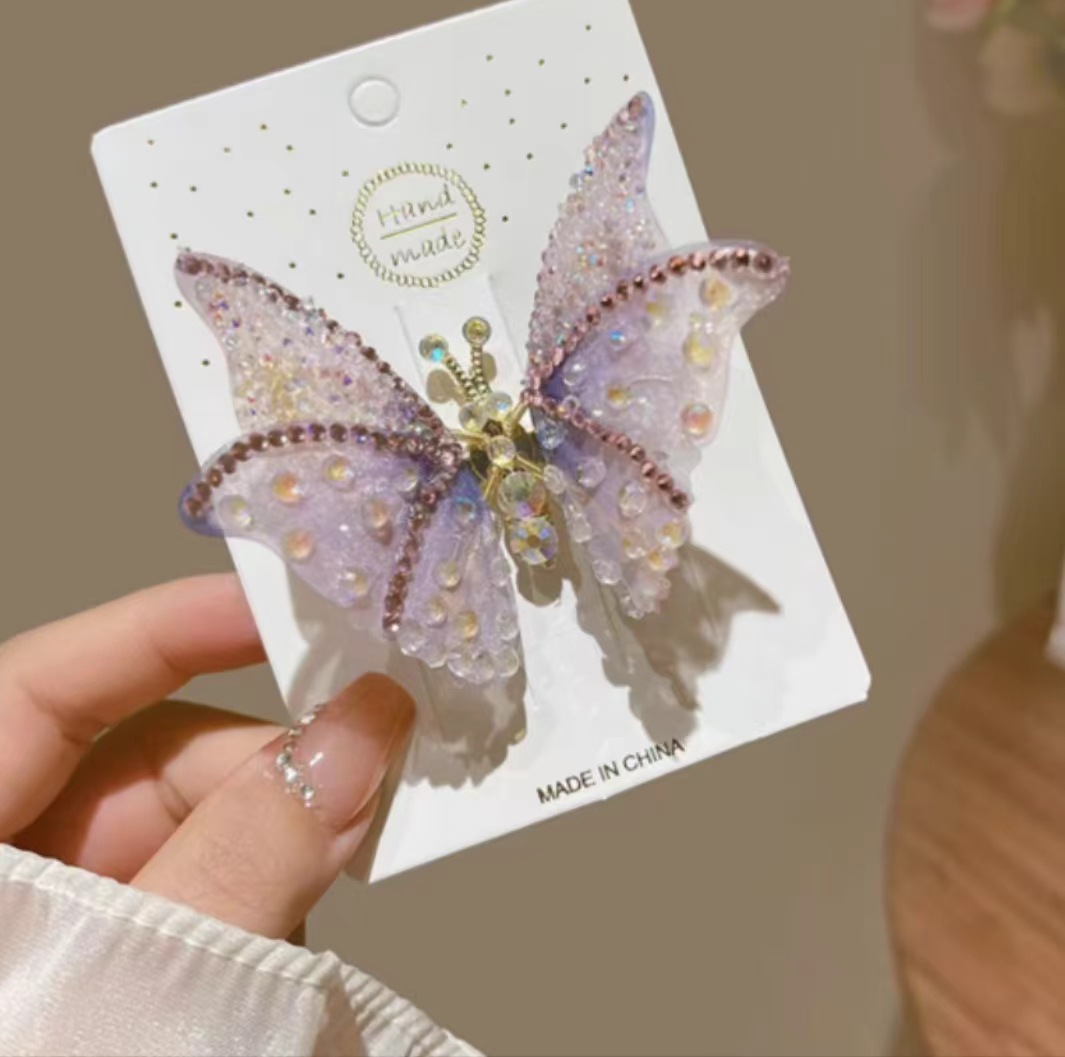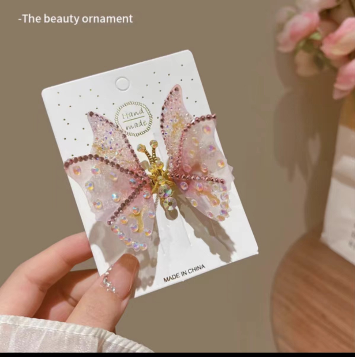 움직이는 날개를 가진 나비 술 머리 클립 새로운 모조 다이아몬드 모조 진주 옆 앞머리 클립 누르는 입 클립 달콤한 모자스토어 가기