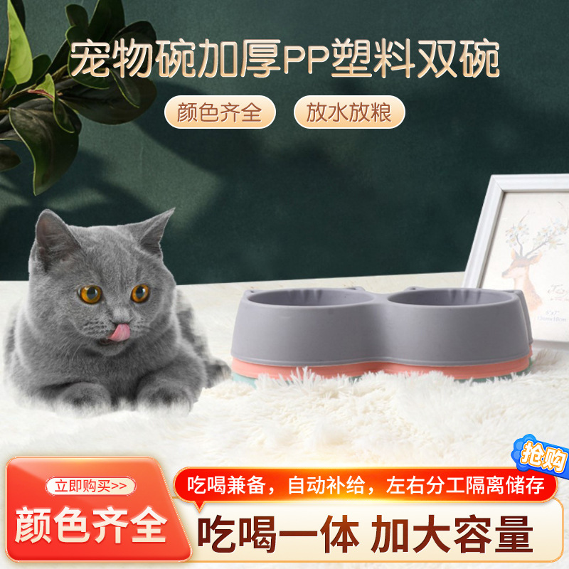 두꺼운 PP 플라스틱으로 만든 애완동물 그릇, 고양이 물통, 고양이 그릇 2개, 강아지 그릇, 애완동물 급식기, 식기 용품 도매스토어 가기