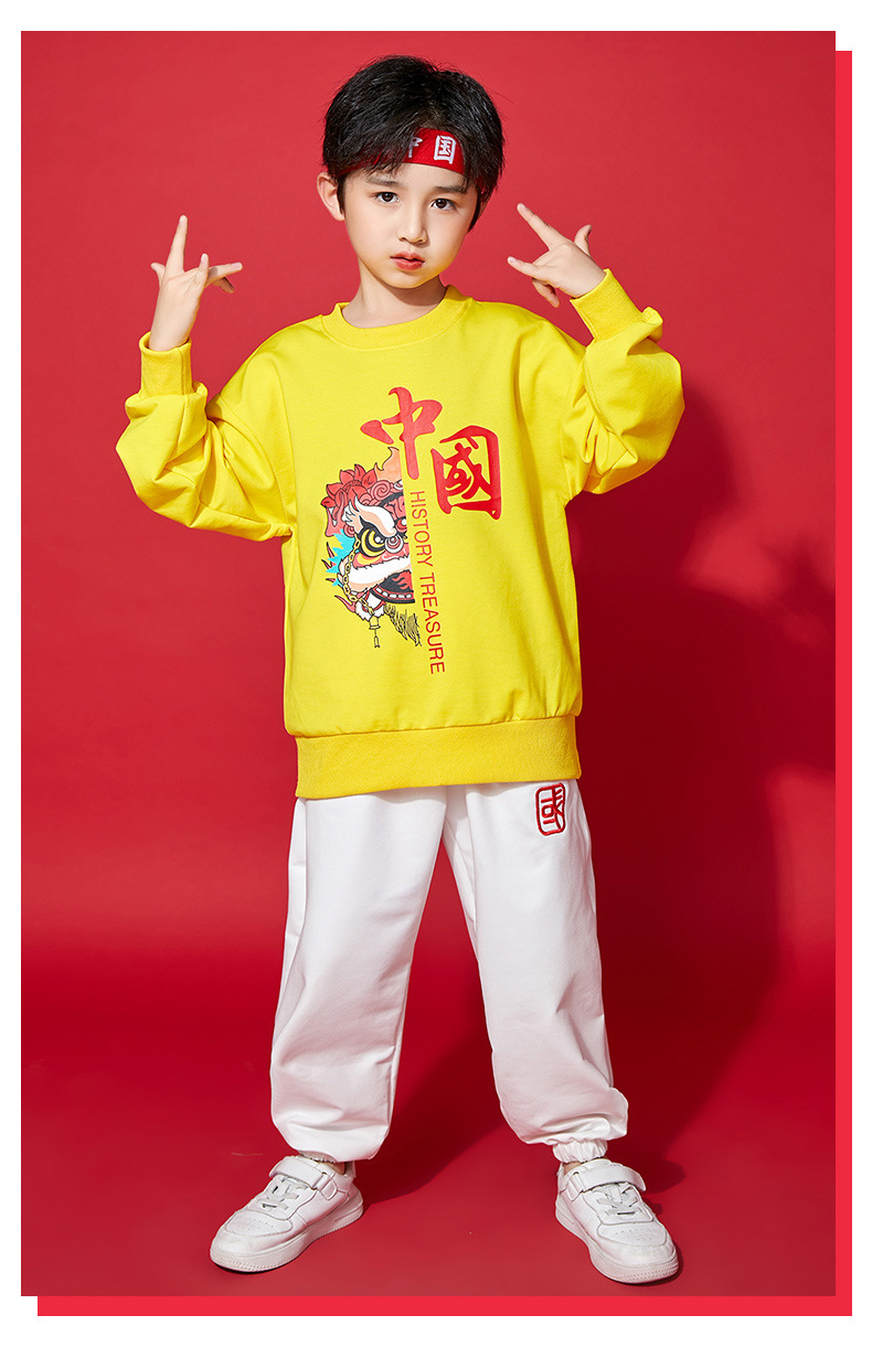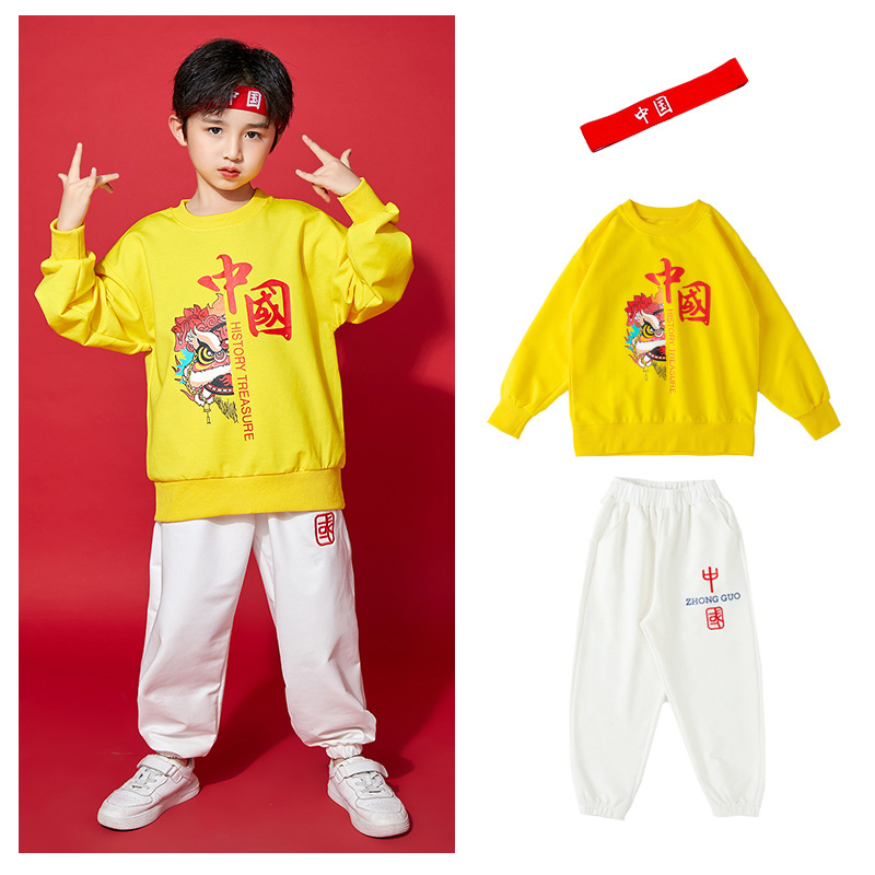• 8503 노란색 남성용 사자 각성 탑 + 8208 흰색 중국 바지 + 중국 머리띠