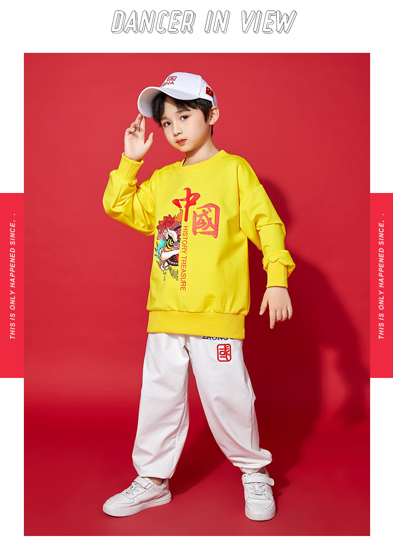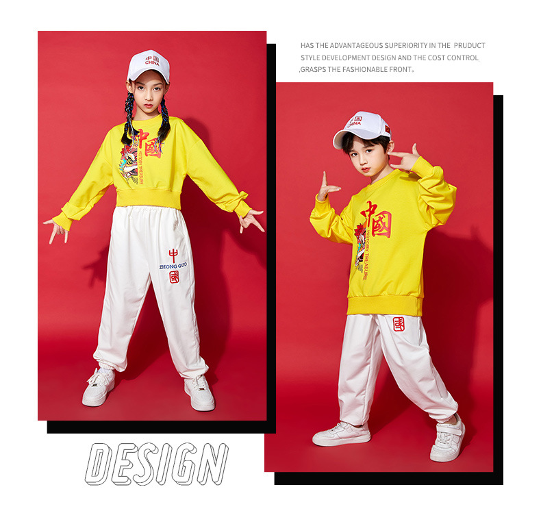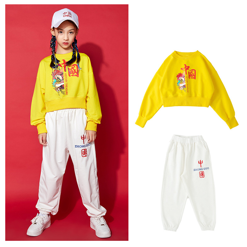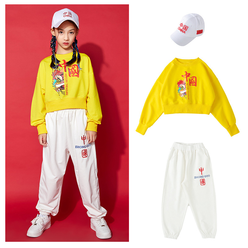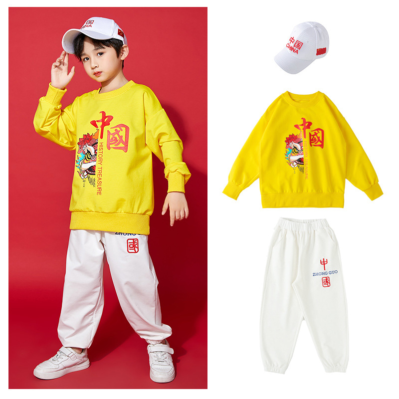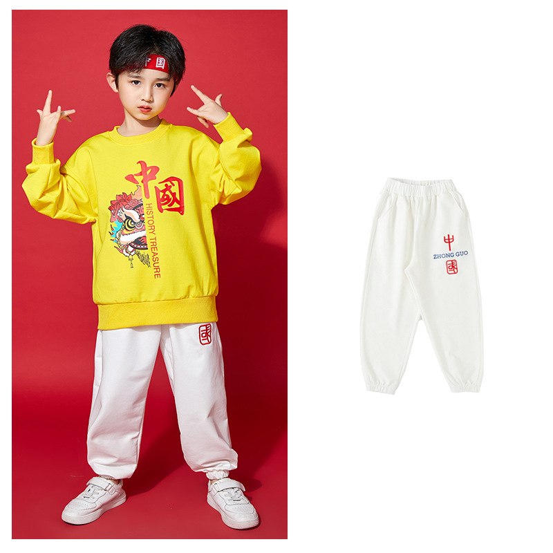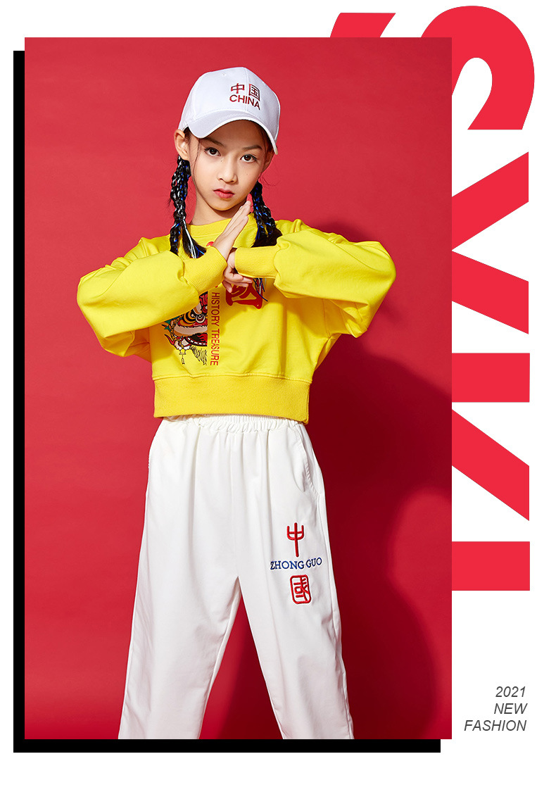• 8603 노란색 여성용 사자 각성 탑 + 8208 흰색 중국 바지 + 빨간색 텍스트 중국 흰색 야구 모자