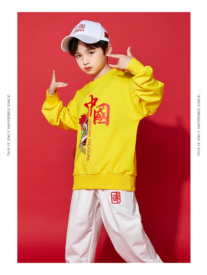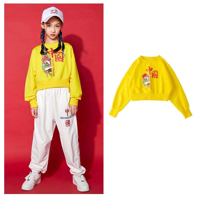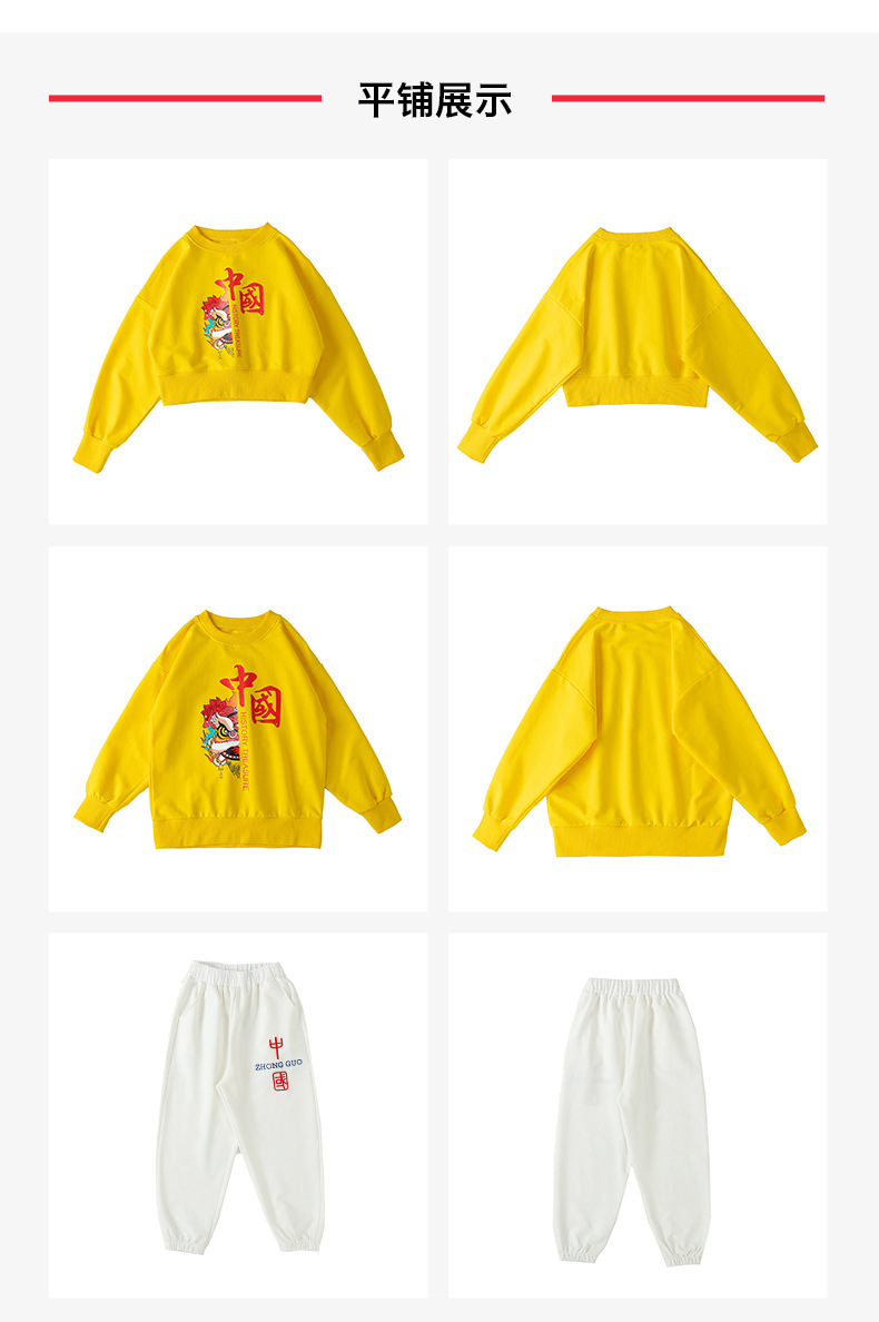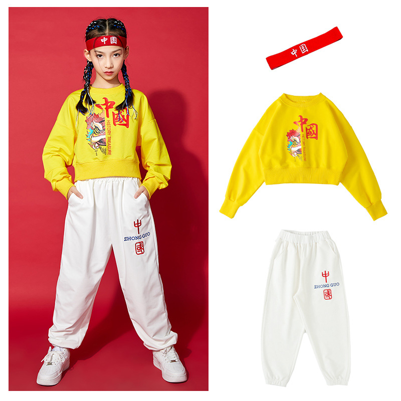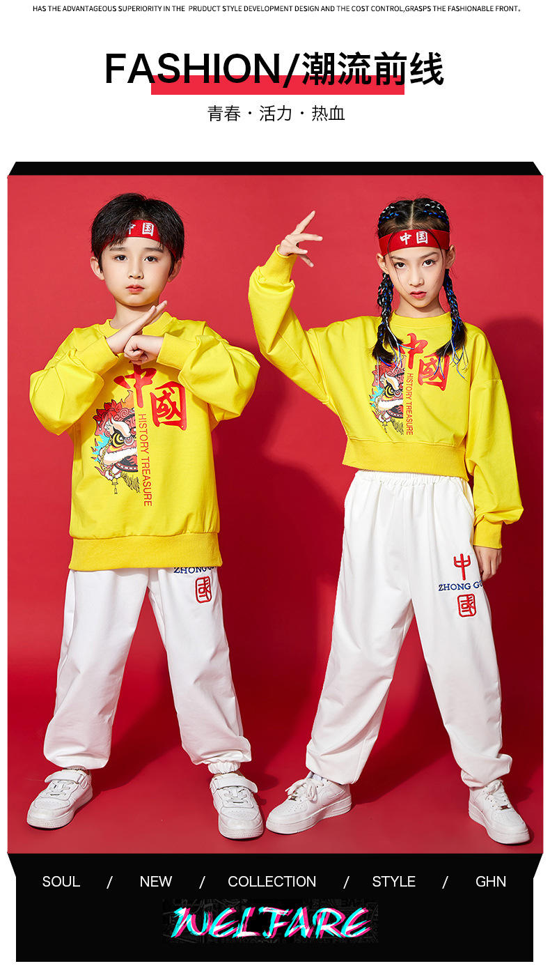 • 8603 노란색 여성용 사자 각성 탑 + 8208 흰색 중국 바지 + 빨간색 텍스트 중국 흰색 야구 모자