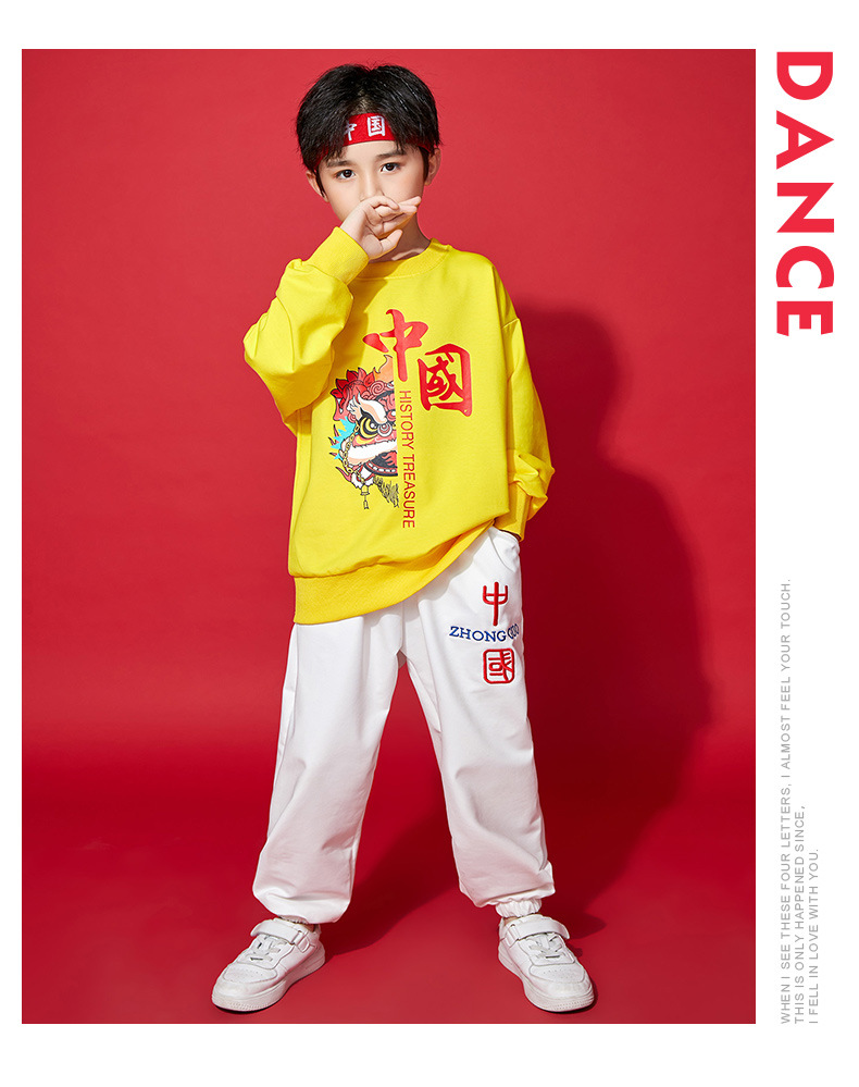 • 8503 노란색 남성용 사자 각성 탑 + 8208 흰색 중국 바지 + 빨간색 텍스트 중국 흰색 야구 모자