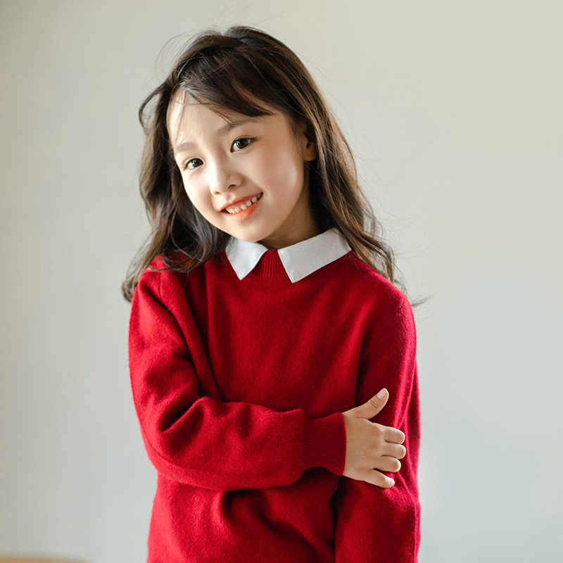 男女儿童半高圆领毛衣套头宝宝100羊毛衫针织打底衫纯色大童毛衣