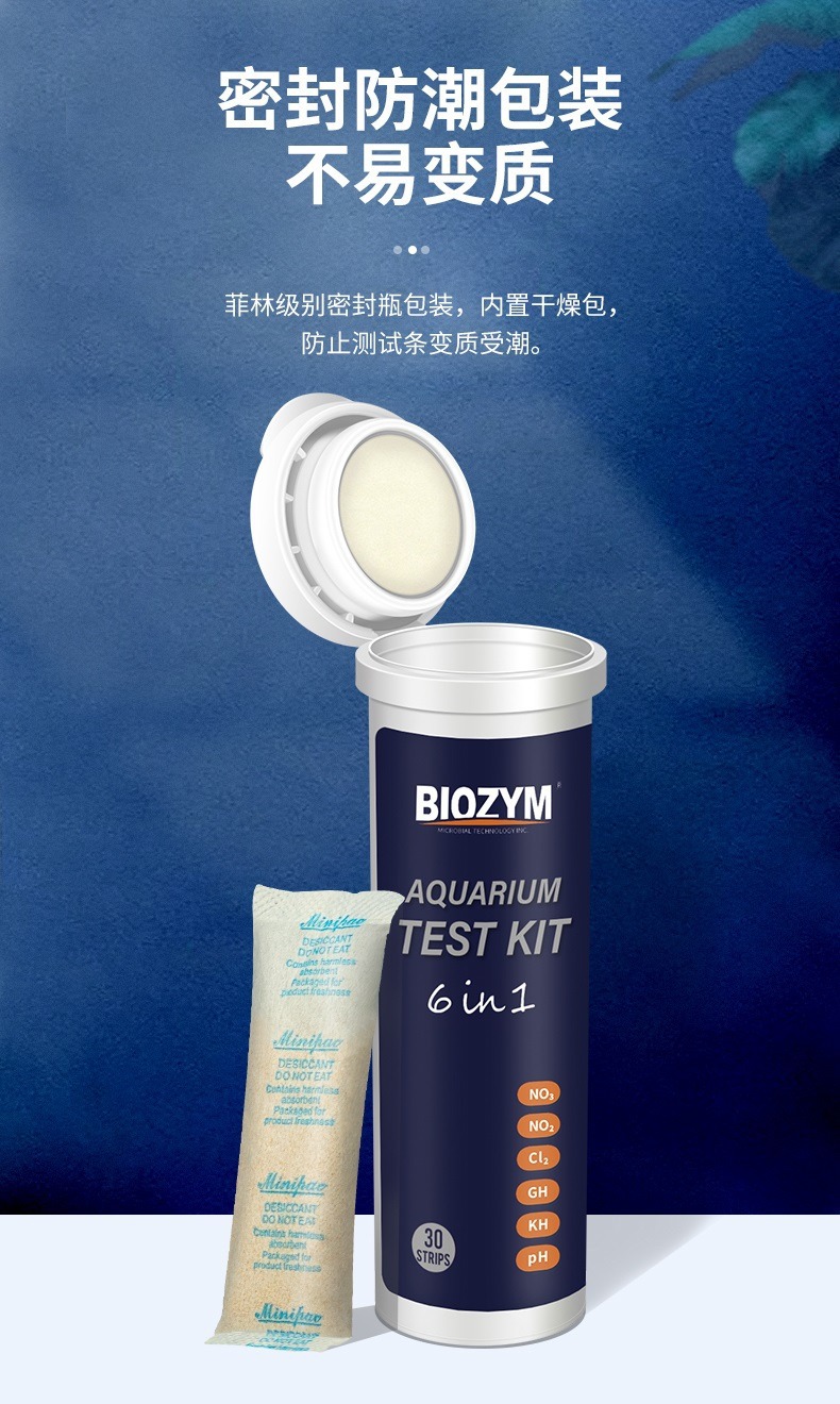 BIOZYM Baiyinmei 6-in-One 테스트 어항 시험지 아질산염 PH 암모니아 질소 잔류 염소 수질 경도 시험