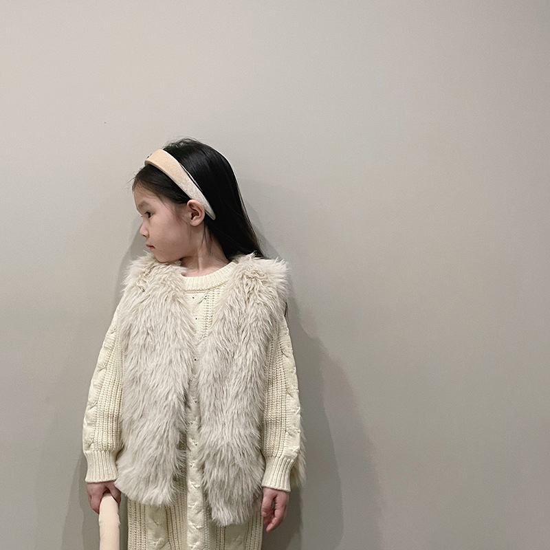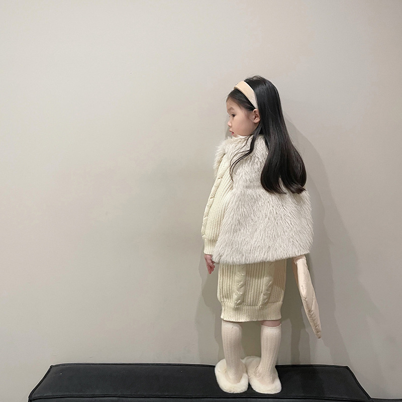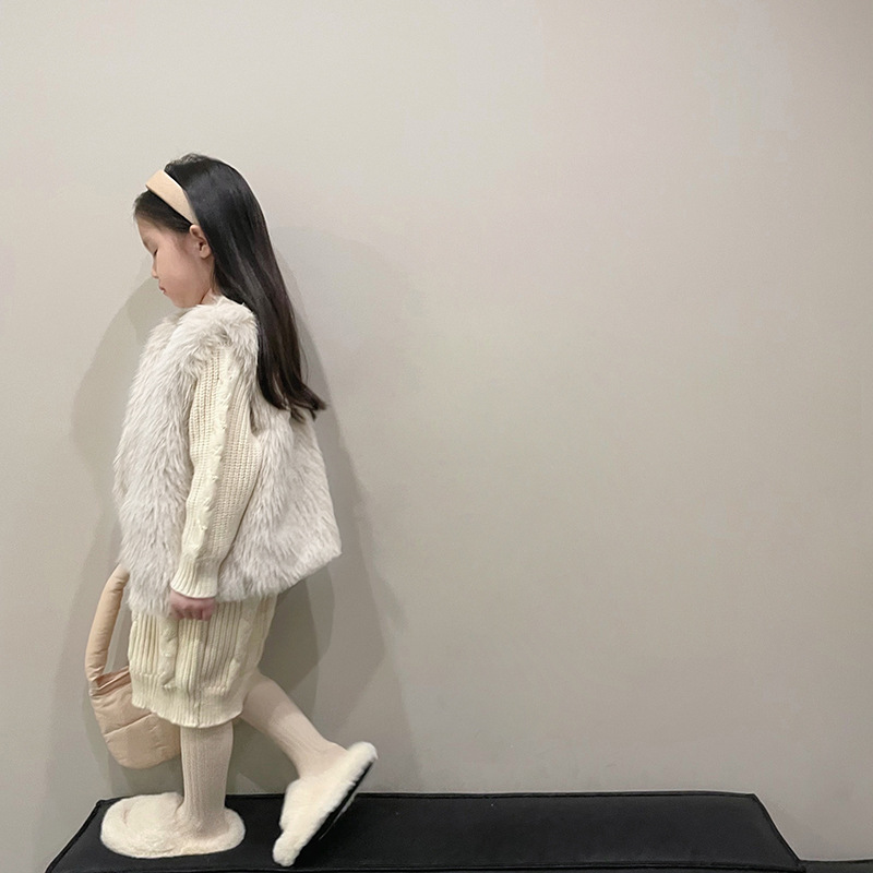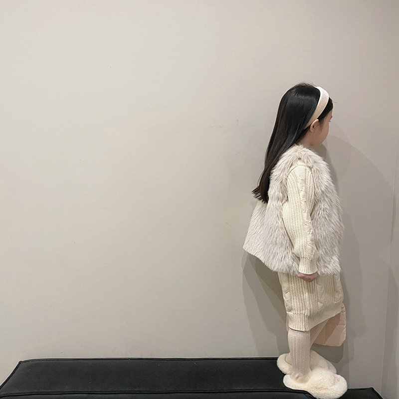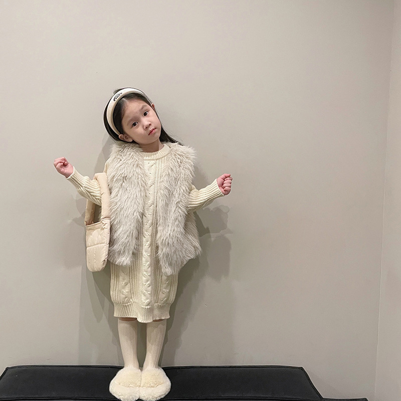한국 아동복 겨울 소녀의 인조 모피 조끼 코트 긴 원피스 여성의 인터넷 연예인 게으른 투피스 세트