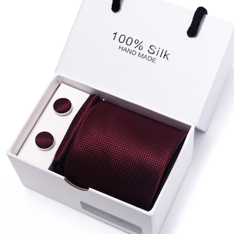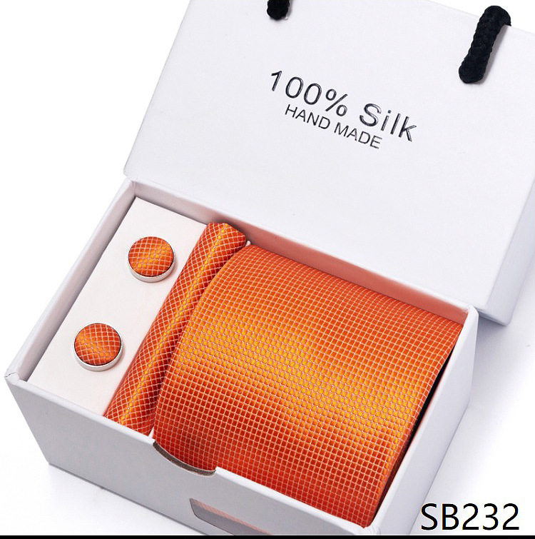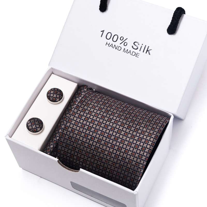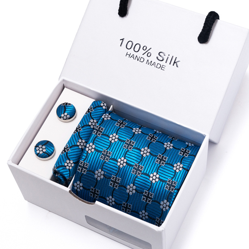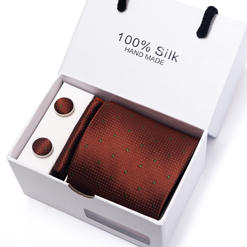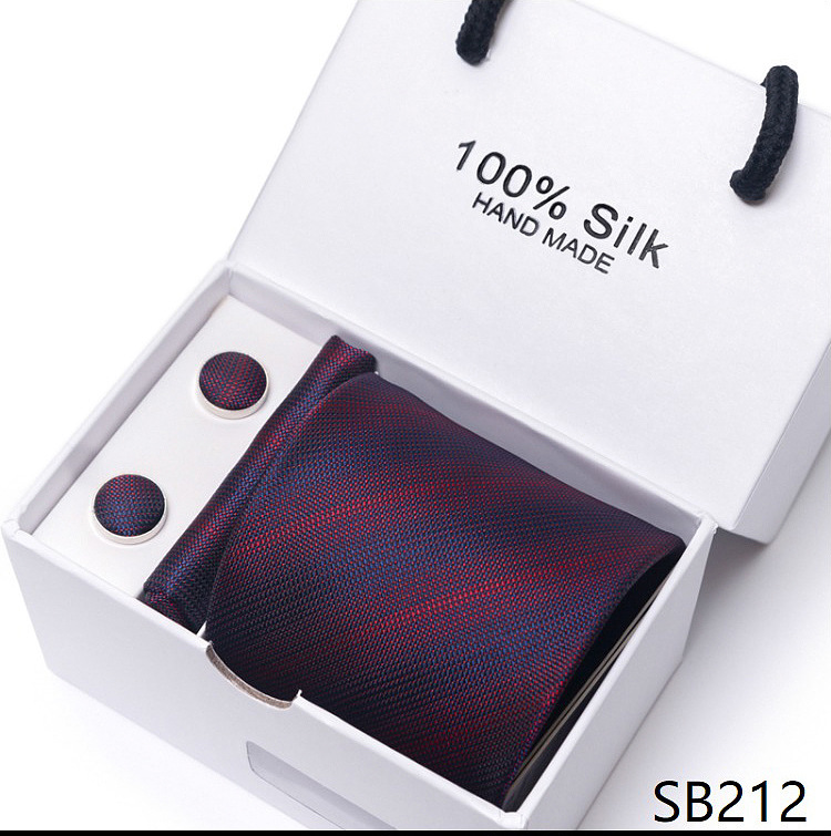 套装包含领带,方巾,袖扣,领带夹,白色礼盒