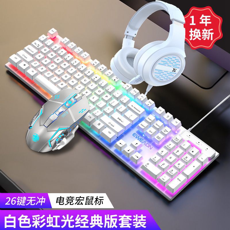 • 화이트 레인보우 라이트 키보드 + 전기 경쟁 마우스 + X12 헤드셋 쇼트 밀 에디션