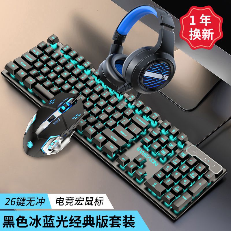 • 블랙 아이스 블루 라이트 키보드 + 매크로 프로그래밍 마우스 + 헤드셋