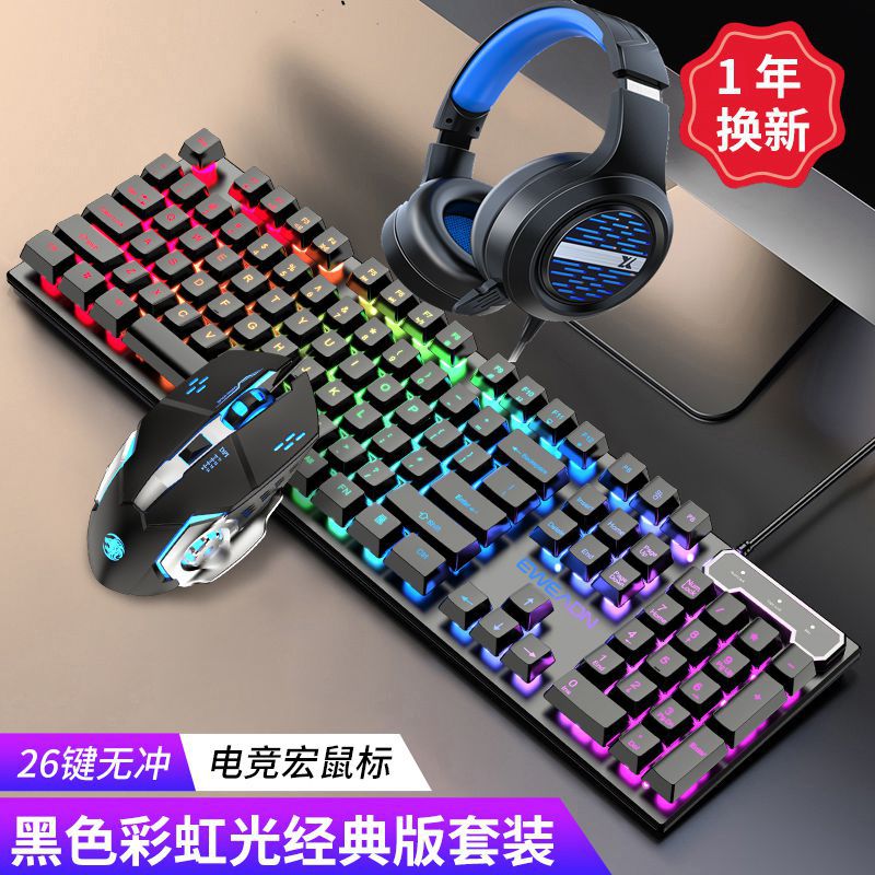 • 블랙 레인보우 라이트 키보드 + 전기 경쟁 마우스 + X12 헤드셋 짧은 밀 에디션