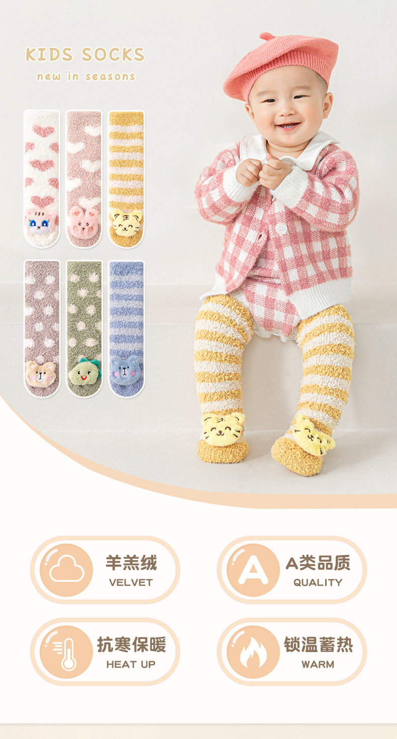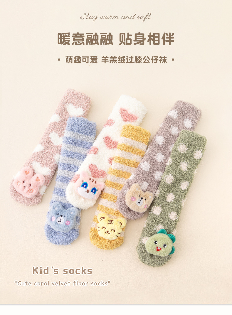 유아 및 유아용 22 슈퍼 두꺼운 기모 미끄럼 방지 양말 소형, 중형 및 대형 어린이 하이 스탬핑 양말 양고기 양털 롱 배럴 양말스토어 가기