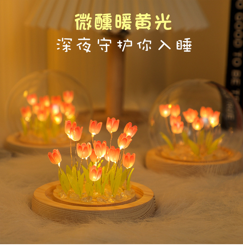 튤립 수제 diy 분위기 램프 장식품 인터넷 연예인 데스크탑 야간 조명 여자 친구를위한 학생 선물스토어 가기