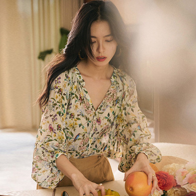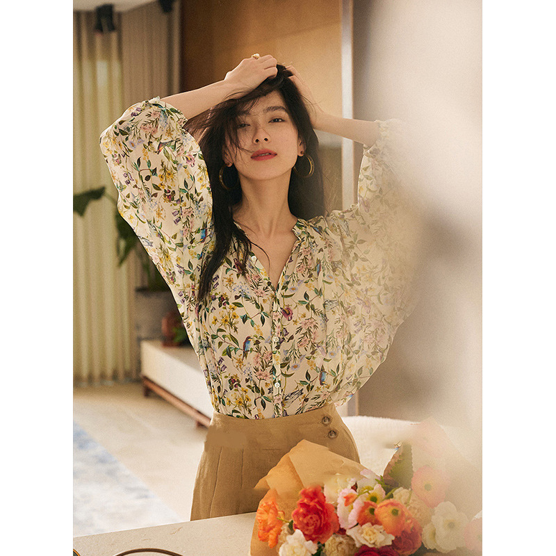 디자인 센스 꽃 쉬폰 셔츠 여성의 2022 년 봄 새로운 우아한 달콤한 작은 셔츠 프랑스 세련된 루즈 탑스토어 가기
