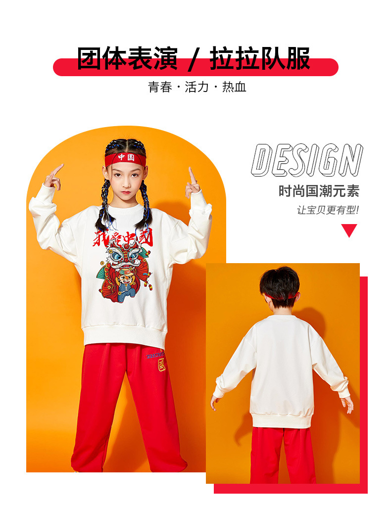 어린이 치어리딩 의상 초등학교 경기 개회식 의상 유치원 수업 의상 아이 러브 차이나 라이온 댄스