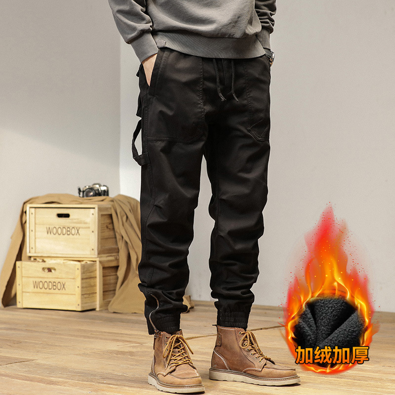 플리스 안감 두꺼운 작업복 바지 2025 겨울 신상 캐주얼 긴바지 루즈핏 남성 바지 발목 조임 따뜻한 바지 도매스토어 가기
